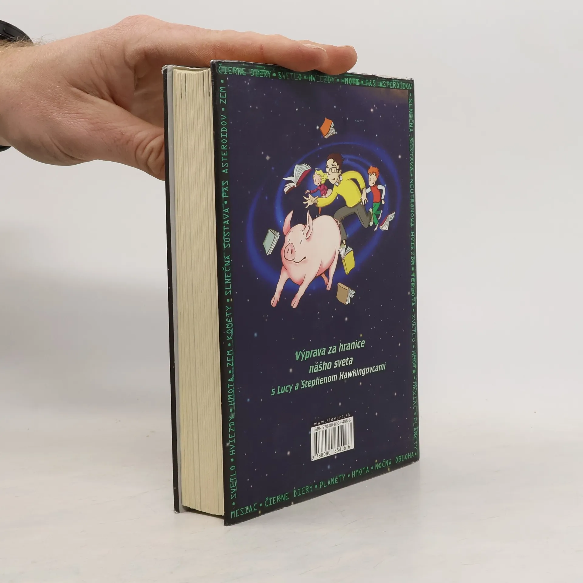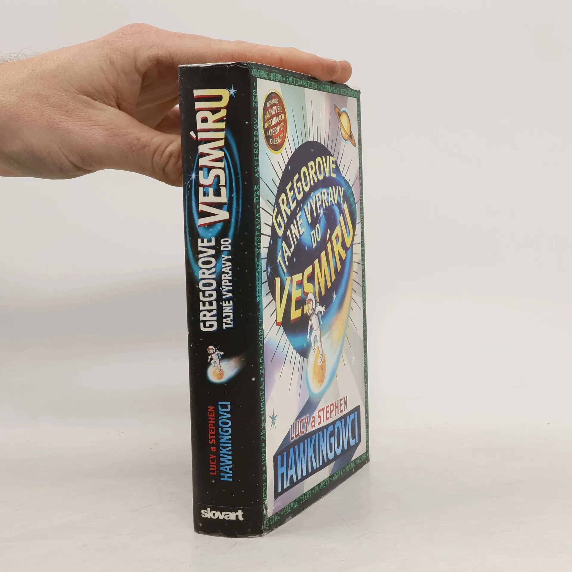 Kniha, ktorú spolu napísali svetoznámy astronóm Stephen Hawking a jeho dcéra Lucy, kombinuje napínavý a zábavný príbeh s množstvom zaujímavých faktov o vesmíre vrátane najnovších poznatkov Stephena Hawkinga o čiernych dierach. Keď Gregor hľadá svoje domáce prasiatko v susednej záhrade, stretne nových susedov Annu a jej otca Erika, ktorý je uznávaný vedec. Otvoria sa mu dvere do celkom nového sveta. Do sveta, kde sa dá na svet pozerať z iného pohľadu – z vesmíru.