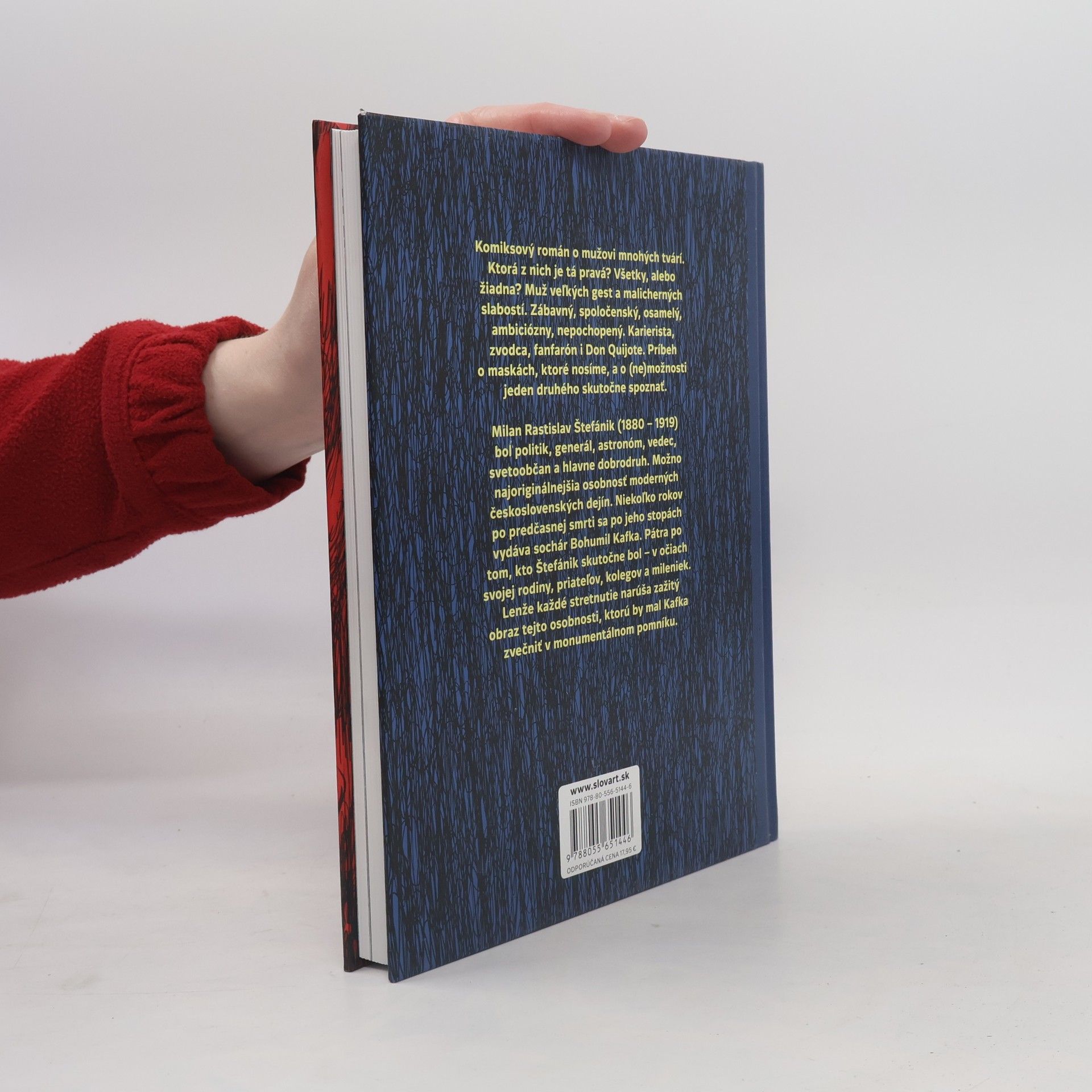 Komiksový román o mužovi mnohých tvárí. Ktorá z nich je tá pravá? Všetky alebo žiadna? Muž veľkých gest a malicherných slabostí. Zábavný, spoločenský, osamelý, ambiciózny, nepochopený. Karierista, zvodca, fanfarón aj Don Quijote. Príbeh o maskách, ktoré nosíme, a o (ne)možnosti jeden druhého skutočne poznať. Milan Rastislav Štefánik (1880 - 1919) bol politik, generál, astronóm, vedec, svetoobčan a predovšetkým dobrodruh. Možno najoriginálnejšia osobnosť moderných československých dejín. Niekoľko rokov po predčasnej smrti sa po jeho stopách vyberie sochár Bohumil Kafka. Pátra po tom, kým Štefánik v skutočnosti bol - v očiach svojej rodiny, priateľov, kolegov, mileniek. Lenže každé stretnutie narúša zaužívaný obraz tejto osobnosti, ktorú by mal Kafka zvečniť v monumentálnom pomníku.