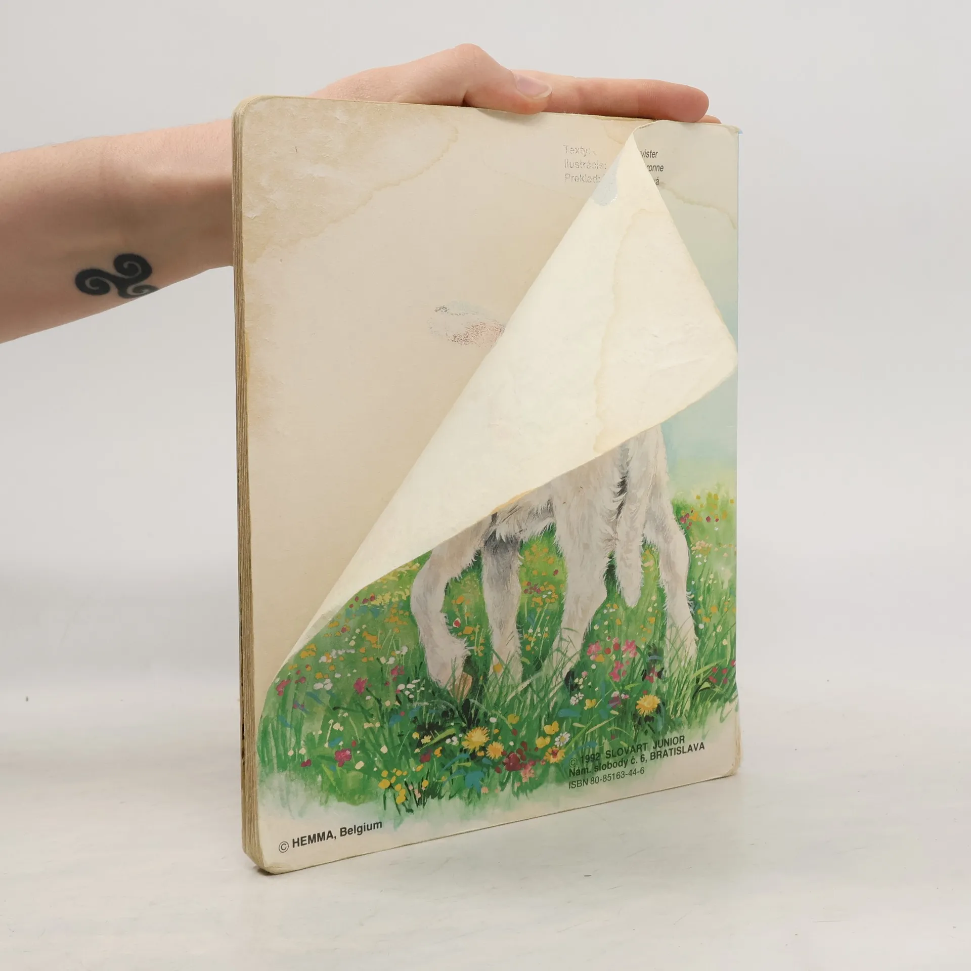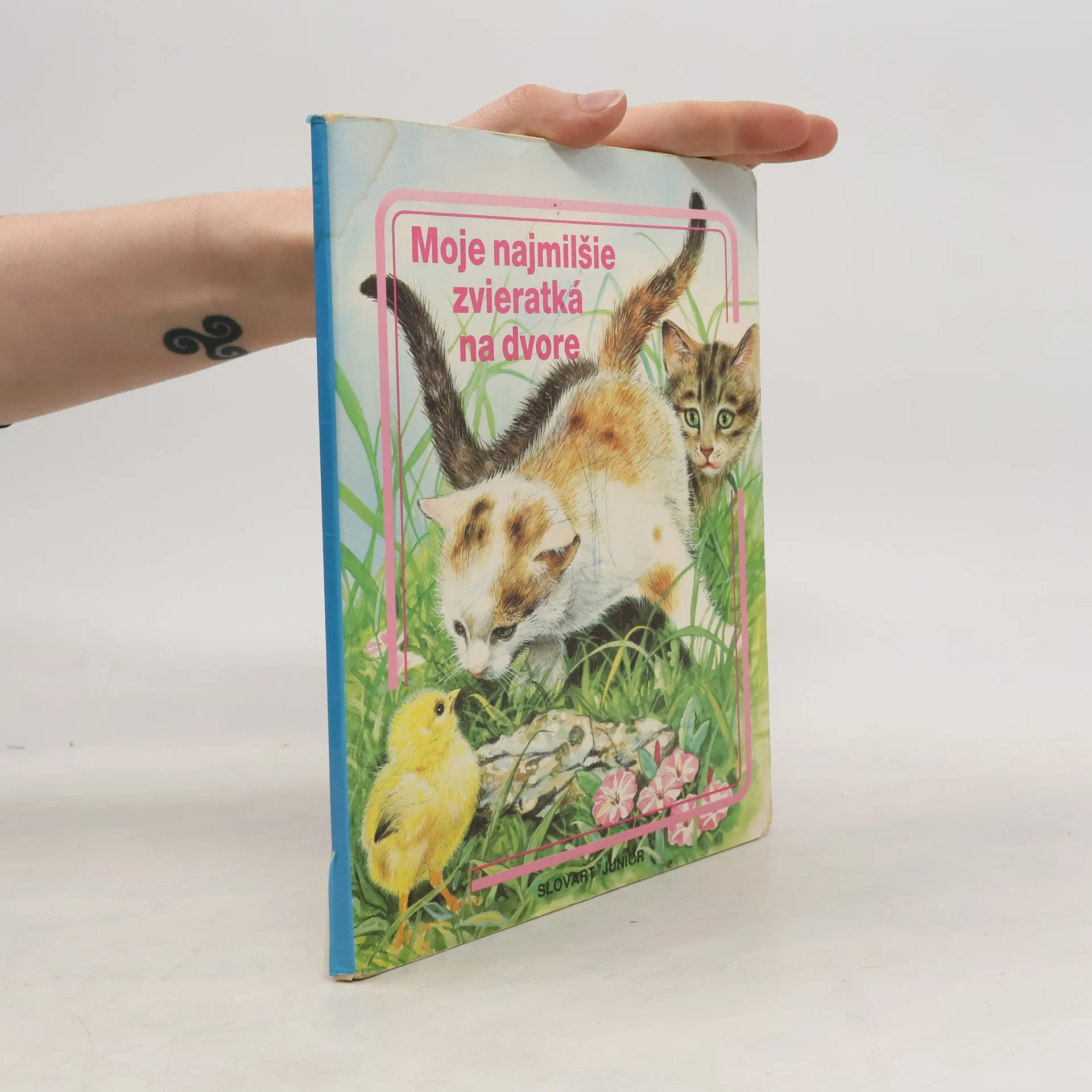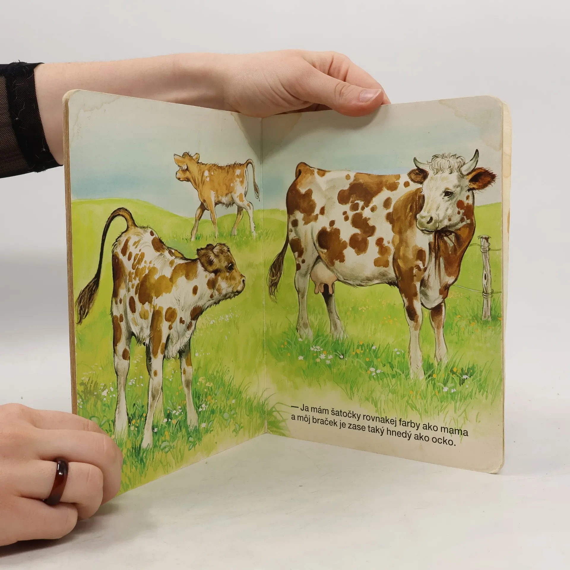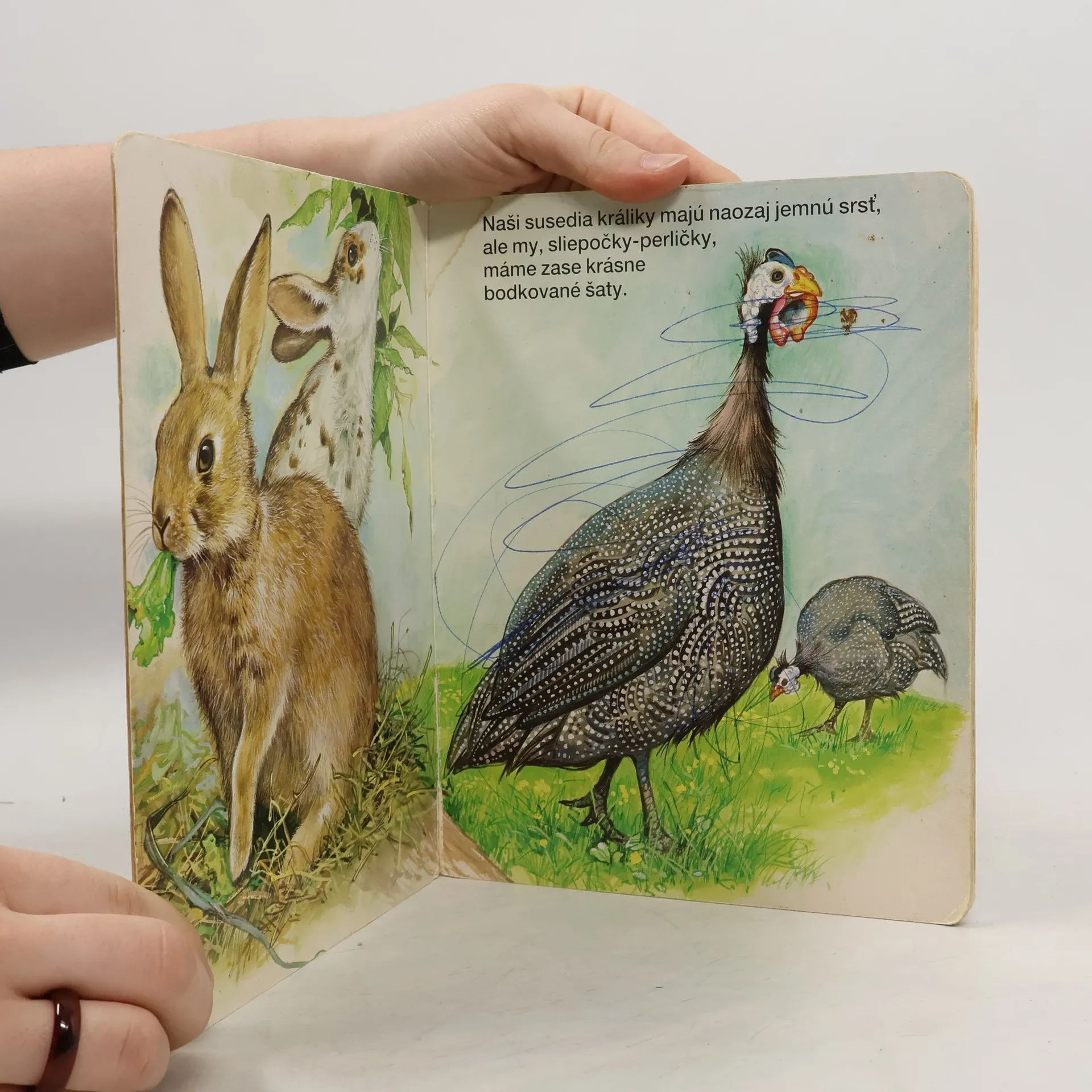 Leporelo o zvieratkách na dvore s krátkym textom o mačičkách a kuriatku, zajačikoch, perličkách, koníkovi, salašníckom psíkovi, holúbkoch, kačkách, kravičke a teliatkach, kozičkách, moriakovi, ovečkách.