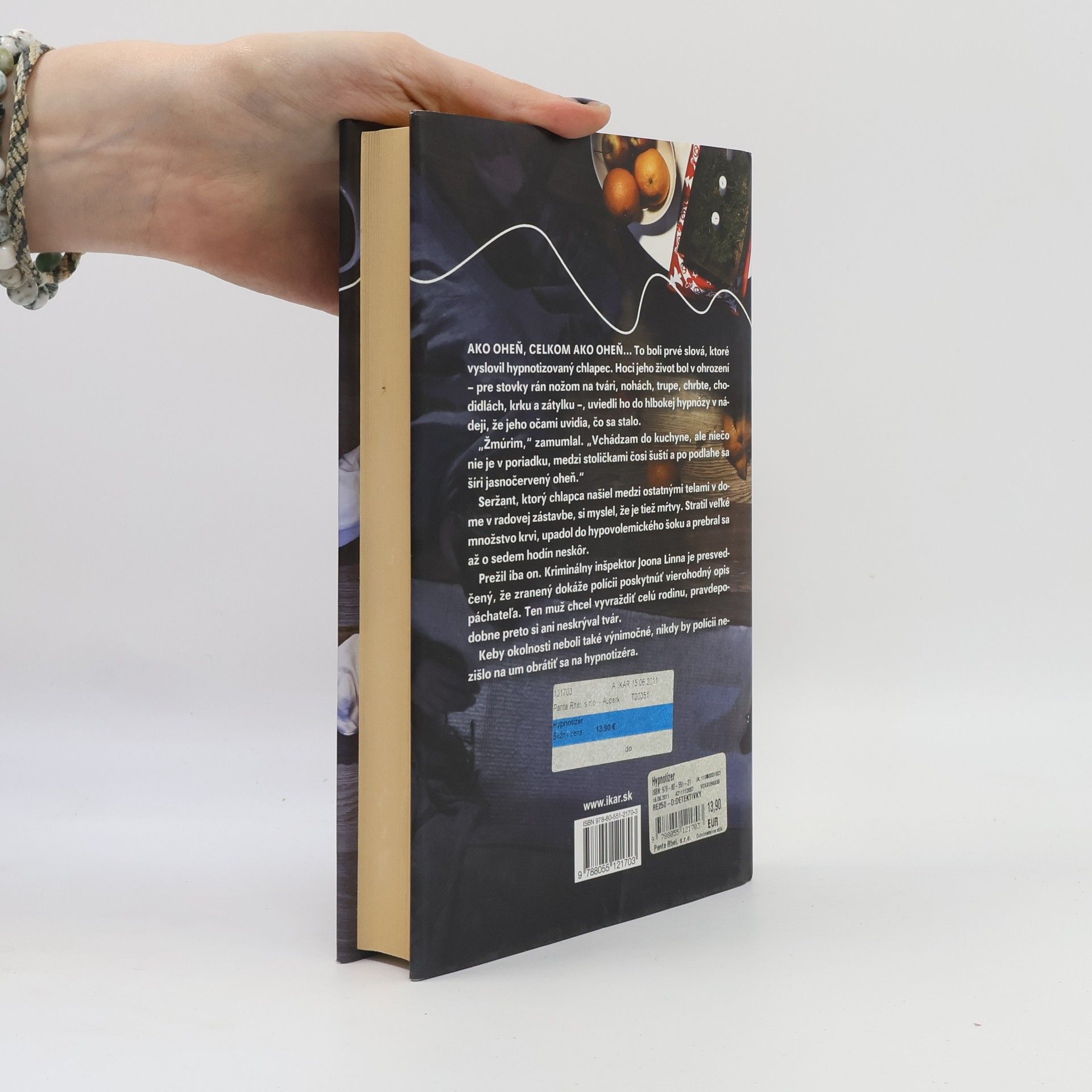 Štokholmského lekára Erika Mariu Barka privolajú v noci k naliehavému prípadu ťažko zraneného chlapca. Jeho otca, stredoškolského učiteľa Andersa Eka, matku Katju aj päťročnú sestru Lisu našli mŕtvych. Brutálny vrah ich dobodal nožom. Prežil len pätnásťročný Josef. Kriminálny inšpektor Joona Linna predpokladá, že páchateľ plánoval vyvraždiť celú rodinu. V nebezpečenstve sa tak ocitá aj Josefova staršia sestra Evelyn. Komisár chce dôležité informácie o prípade získať od zraneného chlapca pomocou hypnózy. Podujme sa na to doktor Bark a nechtiac tak spustí reťaz ďalších nečakaných udalostí. V hypnóze sa totiž Josef prizná, že hľadaným vrahom je práve on! Dá sa hypnóze, tejto netradičnej a mnohými aj neuznávanej metóde, veriť? A má mladík na svedomí aj ďalšie kriminálne činy – pokus o vraždu, únos Erikovho syna Benjamina? Román Hypnotizér vás od začiatku do konca udrží v napätí a milovníkom kriminálneho žánru poskytne ozajstný čitateľský zážitok. Jeho pokračovanie vyšlo pod názvom Paganinikontraktet (Paganiniho zmluva).