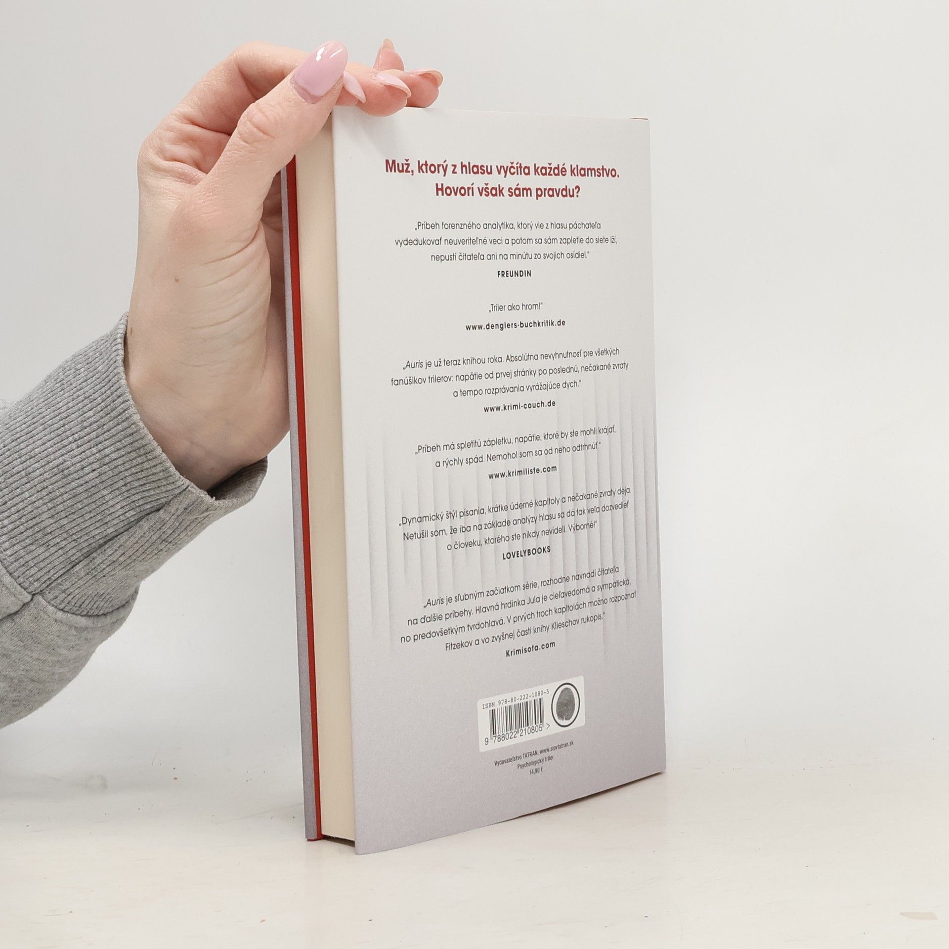 Auris ( z latinského "ucho") rozpráva o slávnom forenznom fonetikovi Mathiasovi Hegelovi, ktorý sa vďaka svojim schopnostiam pričinil o uväznenie mnohých zločincov. Na veľké prekvapenie kolegov sa Hegel dobrovoľne prizná k vražde a aj ho za ňu odsúdia. Zaujímavý námet knihy sa opiera o poznatky forenznej fonetiky. Ľudia s neobyčajne citlivým sluchom dokážu podľa zakašľania zistiť pohlavie, vek, pôvod, vzdelanie, dokonca aj veľkosť obuvi podozrivého. Zistiť sociálny a regionálny pôvod hovoriaceho je úplná samozrejmosť. Práca forenzného fonetika je dosť neobvyklá, s týmto vzrušujúcim povolaním sa v literatúre takmer nestretneme.