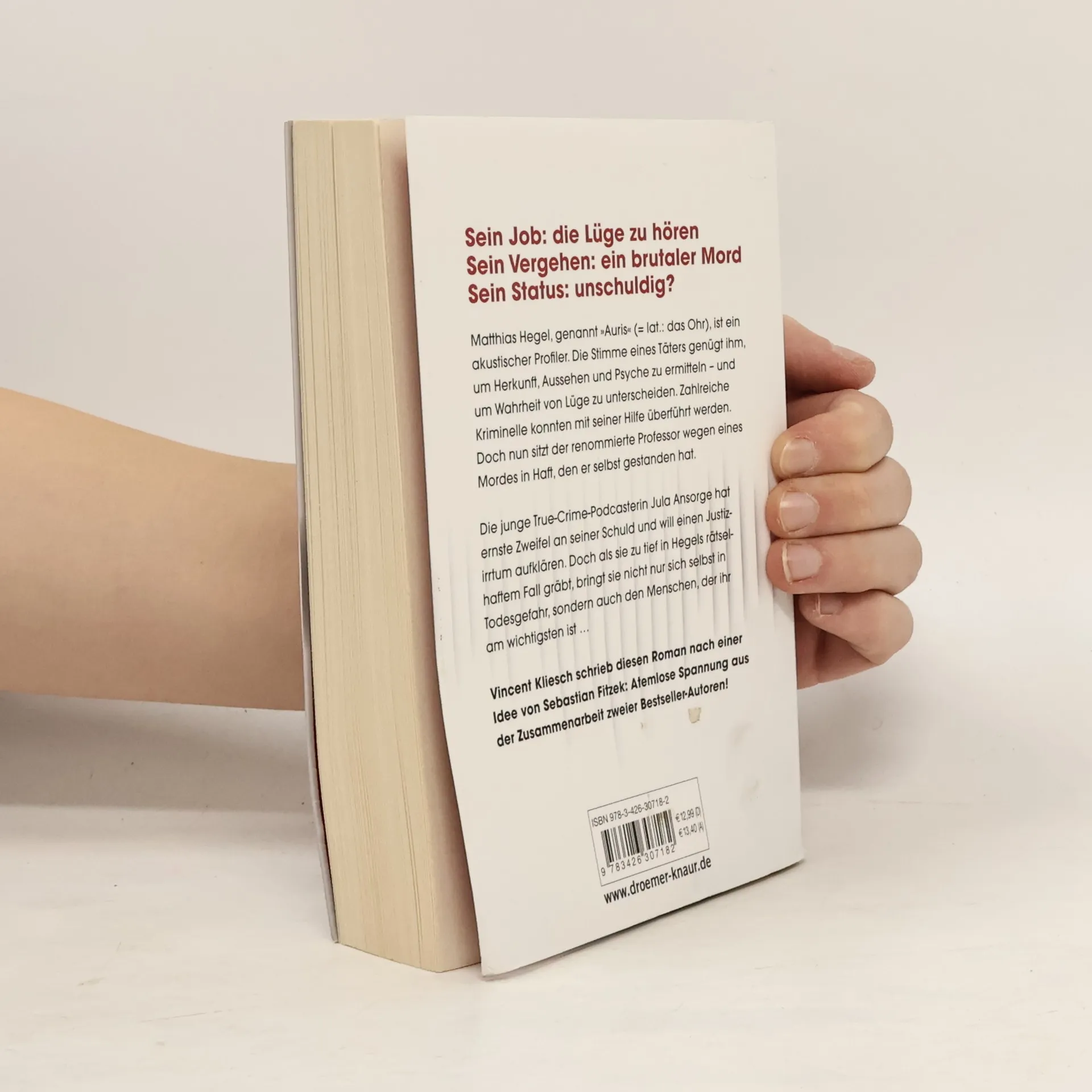 Sie ist jung. Sie glaubt an die Wahrheit. Ein tödlicher Fehler? Rasant und ungewöhnlich: Thriller-Spannung aus der Zusammenarbeit zweier Bestseller-Autoren! Vincent Kliesch schrieb diesen Roman nach einer Idee von Sebastian Fitzek. Die kleinste Abweichung im Klang einer Stimme genügt dem berühmten forensischen Phonetiker Matthias Hegel, um Wahrheit von Lüge zu unterscheiden. Zahlreiche Kriminelle konnten mit seiner Hilfe bereits überführt werden. Hat der Berliner Forensiker nun selbst gelogen? Allzu freimütig scheint sein Geständnis, eine Obdachlose in einem heftigen Streit ermordet zu haben. Die True-Crime-Podcasterin Jula Ansorge, darauf spezialisiert, unschuldig Verurteilte zu rehabilitieren, will unbedingt die Wahrheit herausfinden. Doch als sie zu tief in Hegels Fall gräbt, bringt sie nicht nur sich selbst in größte Gefahr … Der Start einer neuen Thriller-Reihe von Vincent Kliesch und Sebastian Fitzek - rund um die junge True-Crime-Podcasterin Jula Ansorge und das faszinierende Thema forensische Phonetik.