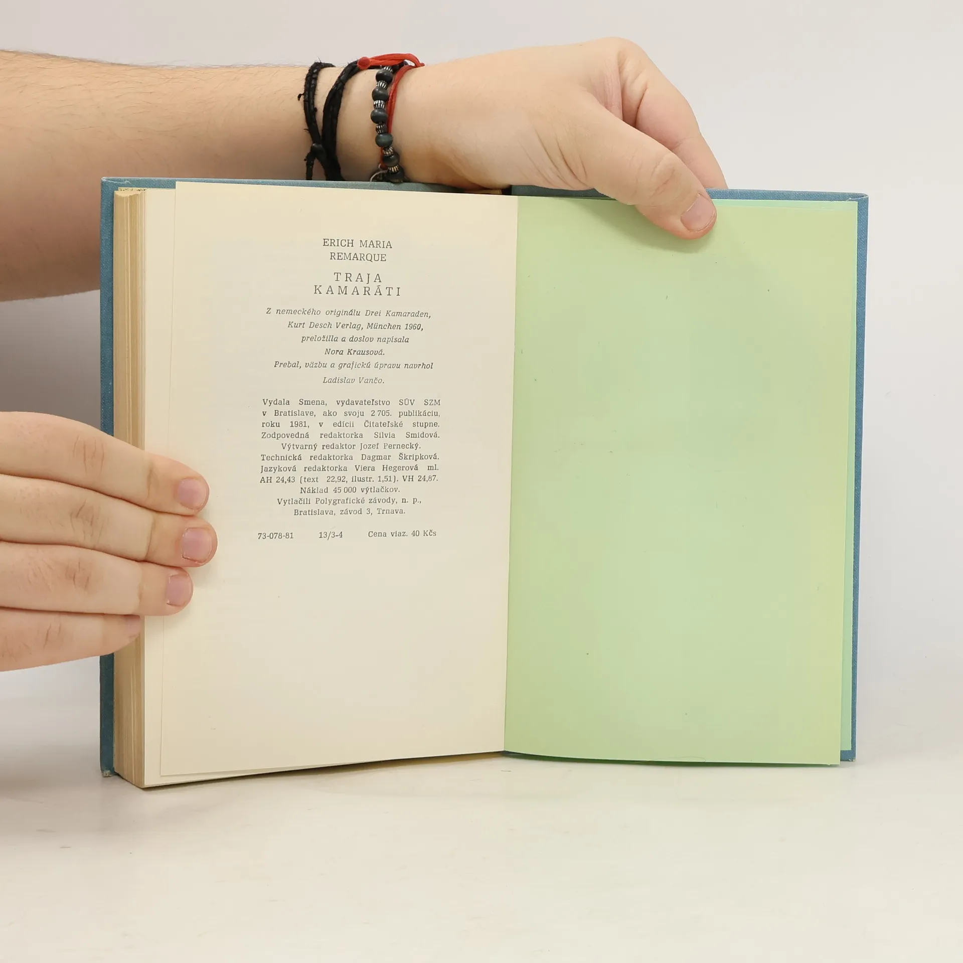 Erich Maria Remarque (1898 – 1970) patrí k najúspešnejším a najčítanejším európskym spisovateľom 20. storočia. Jeho diela boli preložené do tridsiatich jazykov a najmä vďaka príťažlivým opisom s prvkami žurnalistického štýlu dosahujú neobyčajnú silu výpovede. Zachytávajú napínavé vojnové i povojnové príbehy ľudí, poznačené rasovou nenávisťou, nacionalizmom, odcudzením či emigráciou. Hrdina a rozprávač tohto románu Robert Lohkamp kedysi sníval, že sa bude venovať umeniu – prvá svetová vojna však všetko zmenila. V povojnových časoch, v období hospodárskej krízy okolo roku 1930, sa spolu s dvoma kamarátmi prebíjajú životom, ako vedia. Majú autoopravovňu a pokúšajú sa čeliť hroziacej nezamestnanosti. Láska Roberta k Patrícii Hollmannovej presvetľuje román ako jasný lúč. Pat pochádza z meštiackej rodiny, žije však v schudobnených pomeroch, a navyše zápasí so smrteľnou chorobou. To všetko Robert spočiatku vôbec netuší. Remarque na jednotlivých osudoch postáv zachytáva celú spoločenskú i politickú situáciu v Nemecku, hoci ju podrobne neopisuje. Príbeh jasne svedčí o autorovom rozčarovaní z ťažkých čias, napriek tomu je pretkaný sviežim humorom. Patrí k najkrajším dielam oslavujúcim silu priateľstva a lásky až do posledného dychu.