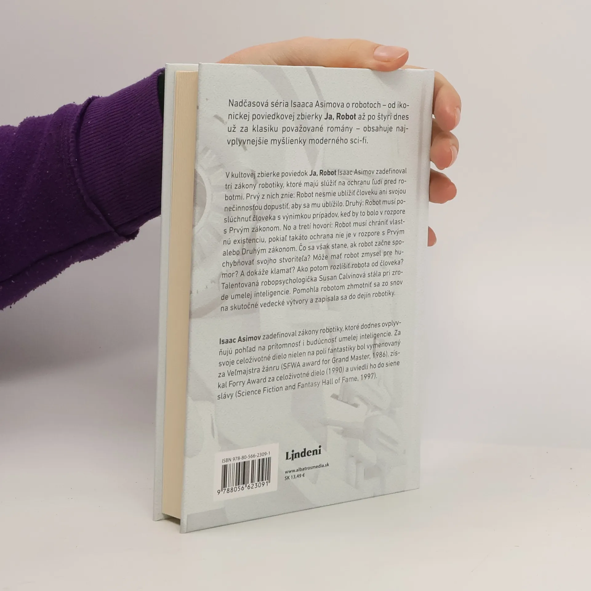 Majstrovský kultový román o ľudskosti, robotike a hlbokej sonde do zmyslu života. Nadčasová séria Isaaca Asimova o robotoch – od ikonickej poviedkovej zbierky Ja, Robot až po štyri dnes už za klasiku považované romány – obsahuje najvplyvnejšie myšlienky moderného sci-fi. Asimov zadefinoval zákony robotiky, ktoré dodnes ovplyvňujú pohľad na prítomnosť i budúcnosť umelej inteligencie. V kultovej zbierke poviedok Ja, Robot Isaac Asimov zadefinoval tri zákony robotiky, ktoré majú slúžiť na ochranu ľudí pred robotmi. Prvý z nich znie: Robot nesmie ublížiť človeku ani svojou nečinnosťou dopustiť, aby sa mu ublížilo. Druhý: Robot musí poslúchnuť človeka s výnimkou prípadov, keď by to bolo v rozpore s Prvým zákonom. No a tretí hovorí: Robot musí chrániť vlastnú existenciu, pokiaľ takáto ochrana nie je v rozpore s Prvým alebo Druhým zákonom. Čo sa však stane, ak robot začne spochybňovať svojho stvoriteľa? Môže mať robot zmysel pre humor? A dokáže klamať? Ako potom rozlíšiť robota od človeka? Talentovaná robopsychologička Susan Calvinová stála pri zrode umelej inteligencie. Pomohla robotom zhmotniť sa zo snov na skutočné vedecké výtvory a zapísala sa do dejín robotiky.