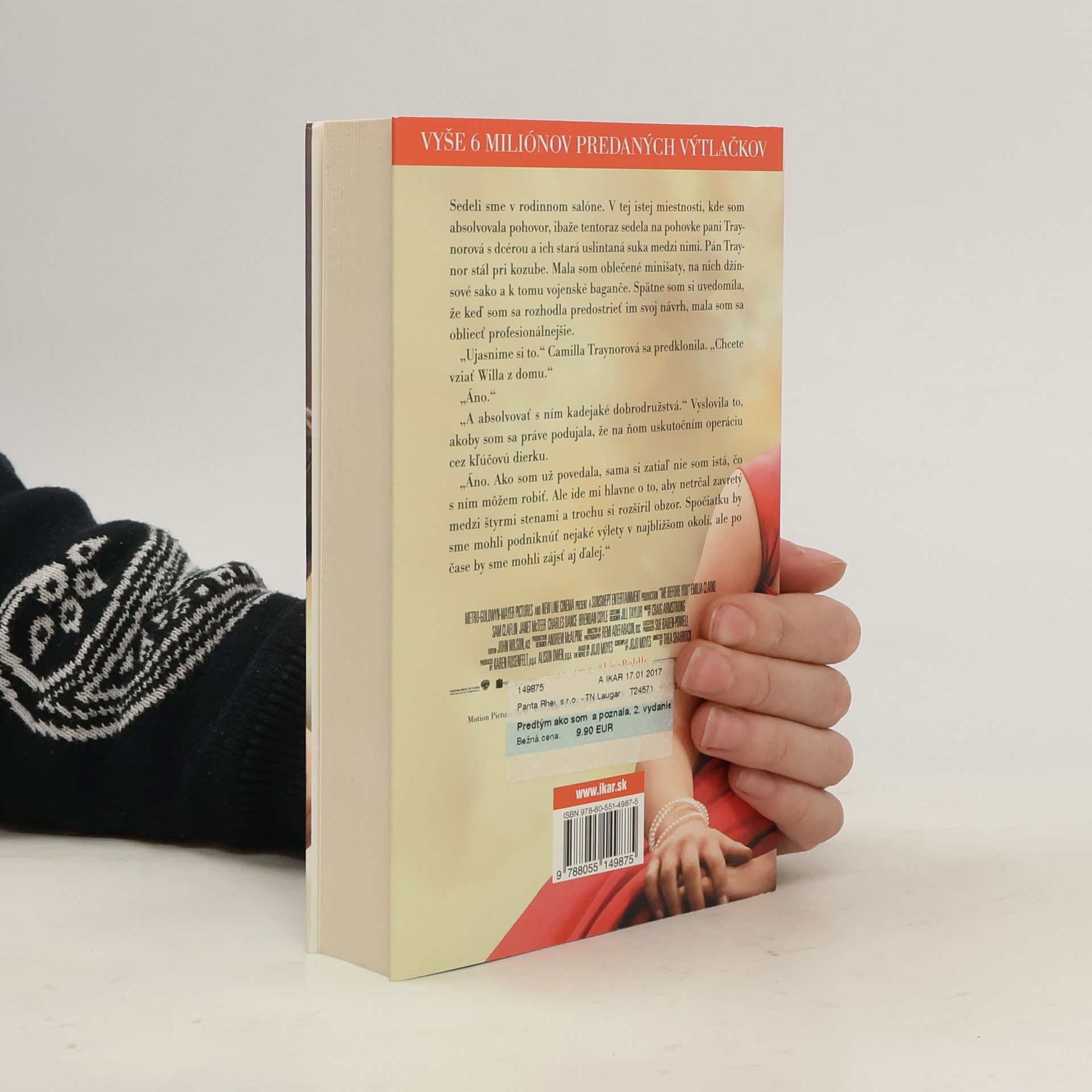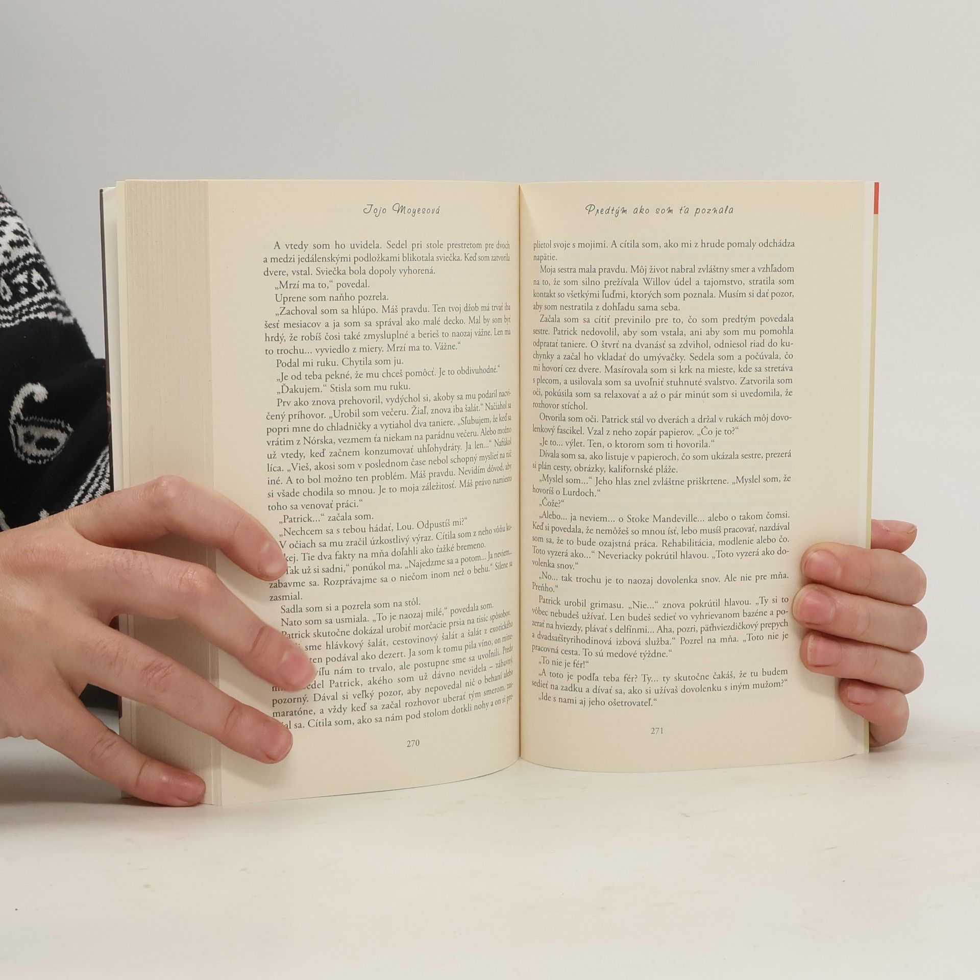 Lou Clarková vie všeličo. Vie, že jej otec si ťažko hľadá prácu, vie, koľko krokov treba prejsť od autobusovej zastávky k rodičovskému domu. Vie, že sa jej páči práca v bistre, a vie, že možno neľúbi svojho priateľa Patricka, oduševneného športovca. Zato nevie nič o klasickej hudbe, nevie, že príde o miesto, a keby tušila, čo ju čaká, asi by prišla o rozum. Will Traynor vie, že po dopravnej nehode stratil chuť do života. Vie, čím bol kedysi, vie, že všetko sa mu teraz zdá malé a neradostné, a veľmi presne vie, ako s tým skoncovať. Zato nevie, že Lou mu vtrhne do života ako farebná búrka. A ani jeden z nich nevie, že jeden druhého navzájom navždy zmenia. Román Predtým ako som ťa poznala má aj voľné pokračovanie. O ďalšom osude hlavných hrdinov autorka napísala knihu s názvom Čo bolo potom.