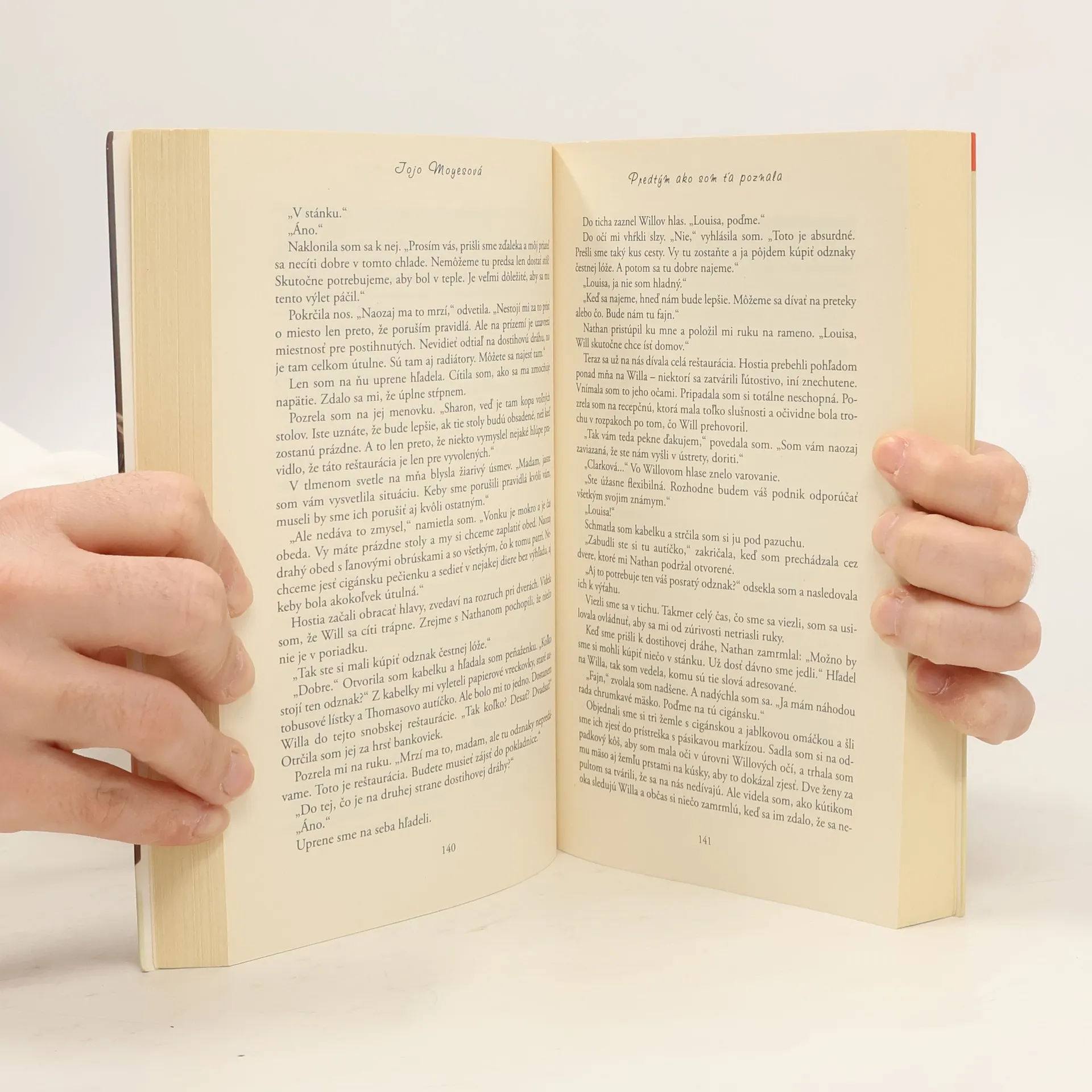 Lou Clarková vie všeličo. Vie, že jej otec si ťažko hľadá prácu, vie, koľko krokov treba prejsť od autobusovej zastávky k rodičovskému domu. Vie, že sa jej páči práca v bistre, a vie, že možno neľúbi svojho priateľa Patricka, oduševneného športovca. Zato nevie nič o klasickej hudbe, nevie, že príde o miesto, a keby tušila, čo ju čaká, asi by prišla o rozum. Will Traynor vie, že po dopravnej nehode stratil chuť do života. Vie, čím bol kedysi, vie, že všetko sa mu teraz zdá malé a neradostné, a veľmi presne vie, ako s tým skoncovať. Zato nevie, že Lou mu vtrhne do života ako farebná búrka. A ani jeden z nich nevie, že jeden druhého navzájom navždy zmenia. Román Predtým ako som ťa poznala má aj voľné pokračovanie. O ďalšom osude hlavných hrdinov autorka napísala knihu s názvom Čo bolo potom.