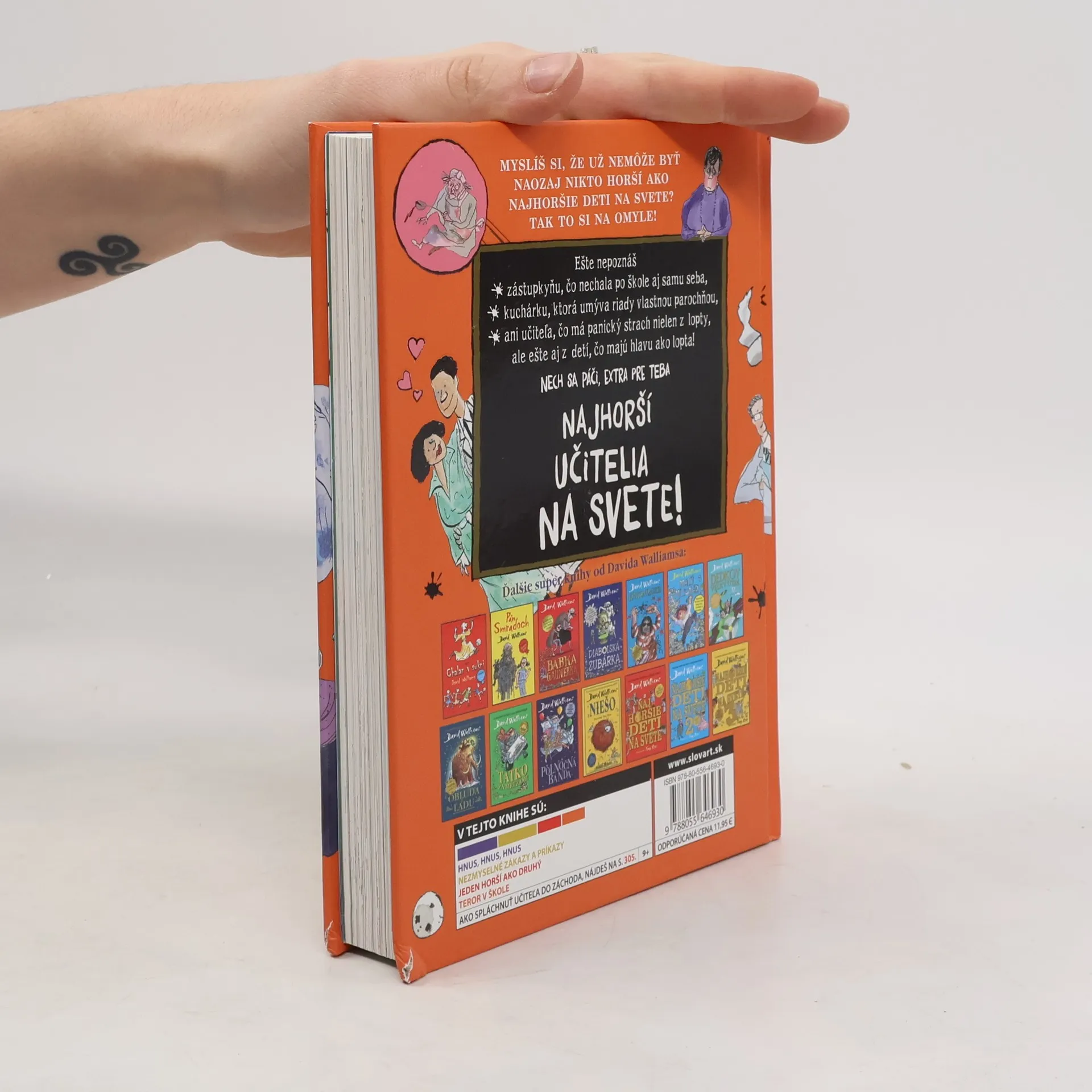Mysleli ste si, že nikto nemôže byť horší ako najhoršie deti na svete? Mýlili ste sa! Neveríte? Tak sa presvedčte! Spoznajte zástupkyňu, čo nechala samu seba po škole, kuchárku, ktorá umývala riad svojou parochňou, či učiteľa, čo má panický strach z lôpt, dokonca aj z detí, čo majú hlavy ako lopty! Nech sa páči, zoznámte sa s desiatimi najhoršími učiteľmi na svete!
