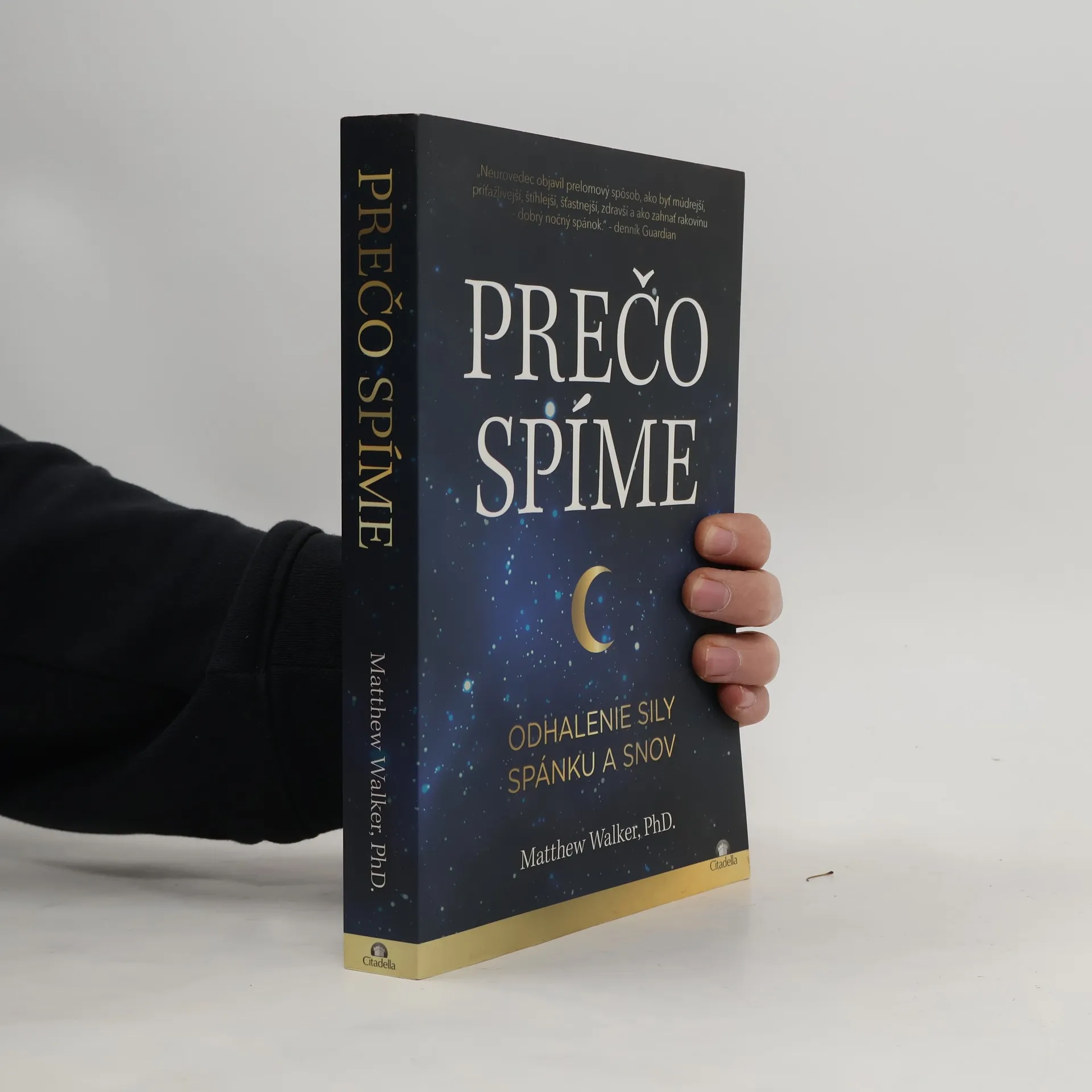 Spánok je jedným z najdôležitejších, ale najmenej pochopených aspektov nášho života, zdravia a dlhovekosti. Dlho sa nevedelo, prečo spíme a aké sú účinky nedostatku spánku na naše telo a mozog. Nové vedecké objavy za posledné dve desaťročia však osvetlili túto problematiku. Neurovedec Matthew Walker nám umožňuje pochopiť, akú životne dôležitú úlohu spánok a snívanie zohráva. Spánok posilňuje naše schopnosti učiť sa, pamätať si a robiť logické rozhodnutia, reguluje emócie, imunitný systém, metabolizmus a apetít. Snívanie pomáha spracovávať bolestivé spomienky a podporuje kreativitu. Walker sa zaoberá kľúčovými otázkami o spánku, ako sú vplyvy kofeínu a alkoholu, procesy počas REM spánku, zmeny spánku v priebehu života a účinky bežných liekov na spanie. Zhrnutím prelomových vedeckých objavov a dekád výskumu vysvetľuje, ako spánok zlepšuje náladu, reguluje hormóny, pôsobí preventívne proti vážnym ochoreniam, spomaľuje starnutie a zvyšuje produktivitu. Tieto poznatky radikálne menia naše chápanie a hodnotenie spánku a snov.