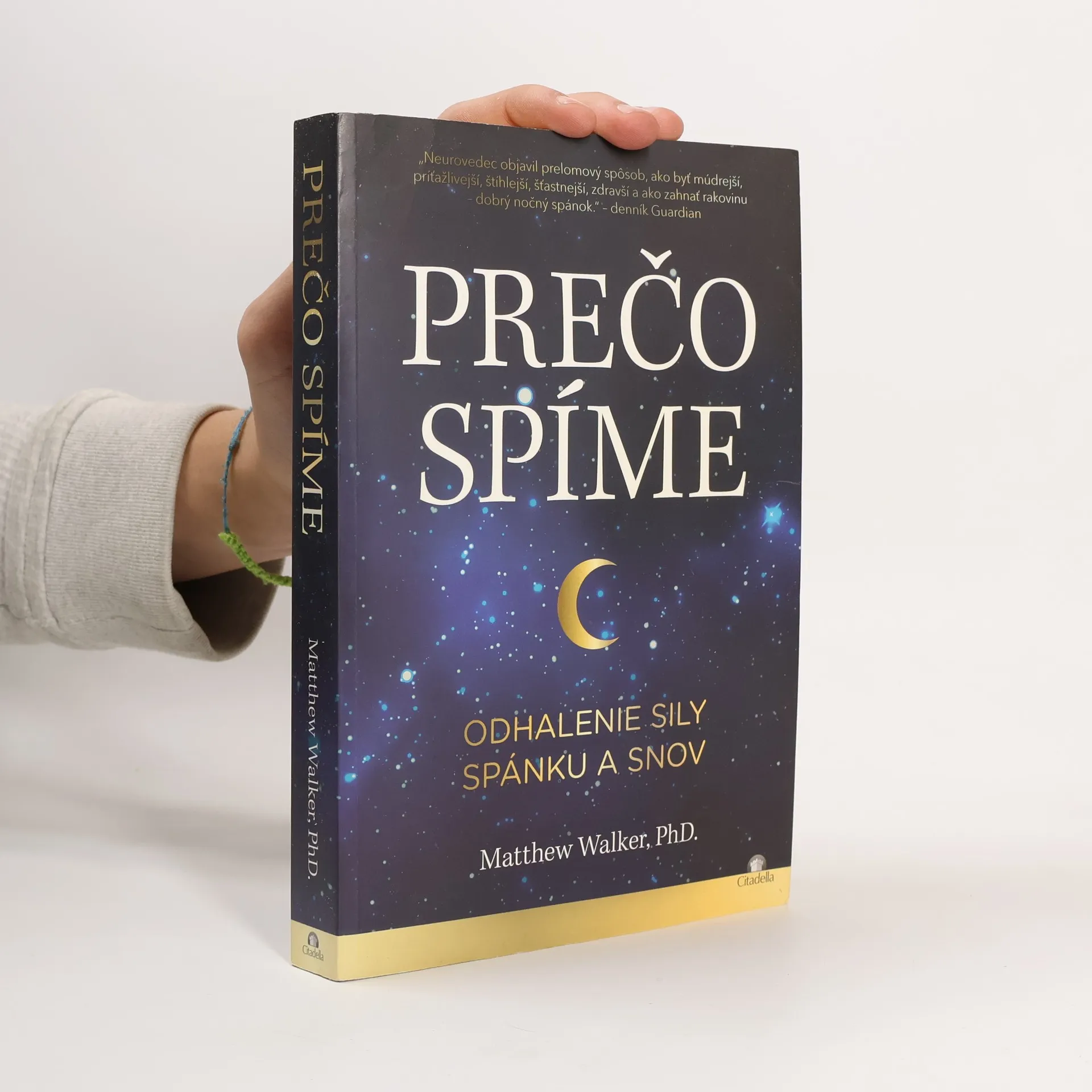 Spánok je jedným z najdôležitejších, ale najmenej pochopených aspektov nášho života, zdravia a dlhovekosti. Dlho sa nevedelo, prečo spíme a aké sú účinky nedostatku spánku na naše telo a mozog. Nové vedecké objavy za posledné dve desaťročia však osvetlili túto problematiku. Neurovedec Matthew Walker nám umožňuje pochopiť, akú životne dôležitú úlohu spánok a snívanie zohráva. Spánok posilňuje naše schopnosti učiť sa, pamätať si a robiť logické rozhodnutia, reguluje emócie, imunitný systém, metabolizmus a apetít. Snívanie pomáha spracovávať bolestivé spomienky a podporuje kreativitu. Walker sa zaoberá kľúčovými otázkami o spánku, ako sú vplyvy kofeínu a alkoholu, procesy počas REM spánku, zmeny spánku v priebehu života a účinky bežných liekov na spanie. Zhrnutím prelomových vedeckých objavov a dekád výskumu vysvetľuje, ako spánok zlepšuje náladu, reguluje hormóny, pôsobí preventívne proti vážnym ochoreniam, spomaľuje starnutie a zvyšuje produktivitu. Tieto poznatky radikálne menia naše chápanie a hodnotenie spánku a snov.