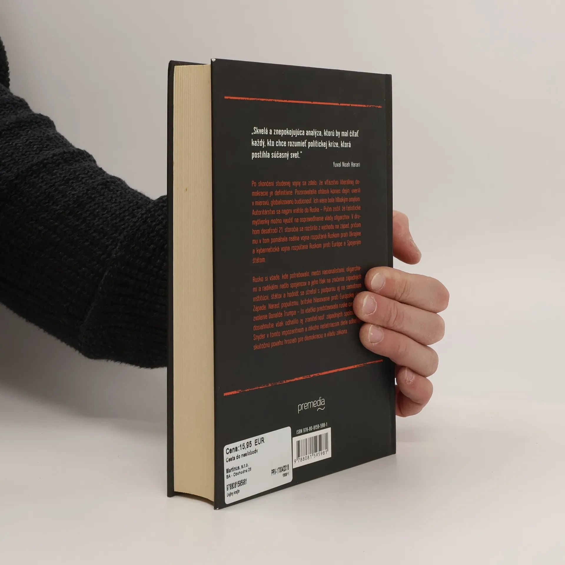 Popredný americký historik prichádza s kronikou nástupu autoritárstva od Ruska cez Európu po Ameriku. Po skončení studenej vojny sa zdalo, že víťazstvo liberálnej demokracie je definitívne. Pozorovatelia ohlásili koniec dejín, uverili v mierovú, globalizovanú budúcnosť. Ich viera bola hlbokým omylom. Autoritárstvo sa najprv vrátilo do Ruska – Putin zistil, že fašistické myšlienky možno využiť na ospravedlnenie vlády oligarchov. V druhom desaťročí 21. storočia sa rozšírilo z východu na západ, pričom mu v tom pomáhala reálna vojna rozpútaná Ruskom proti Ukrajine a kybernetická vojna rozpútaná Ruskom proti Európe a Spojeným štátom. Rusko si všade, kde potrebovalo, medzi nacionalistami, oligarchami a radikálmi našlo spojencov a jeho tlak na zničenie západných inštitúcií, štátov a hodnôt sa stretol s podporou aj na samotnom Západe. Nárast populizmu, britské hlasovanie proti Európskej únii, zvolenie Donalda Trumpa – to všetko predstavovalo ruské ciele; ich dosiahnutie však odhalilo aj zraniteľnosť západných spoločností. Snyder v tomto impozantnom a nikoho nešetriacom diele odhaľuje skutočnú povahu hrozieb pre demokraciu a vládu zákona.
