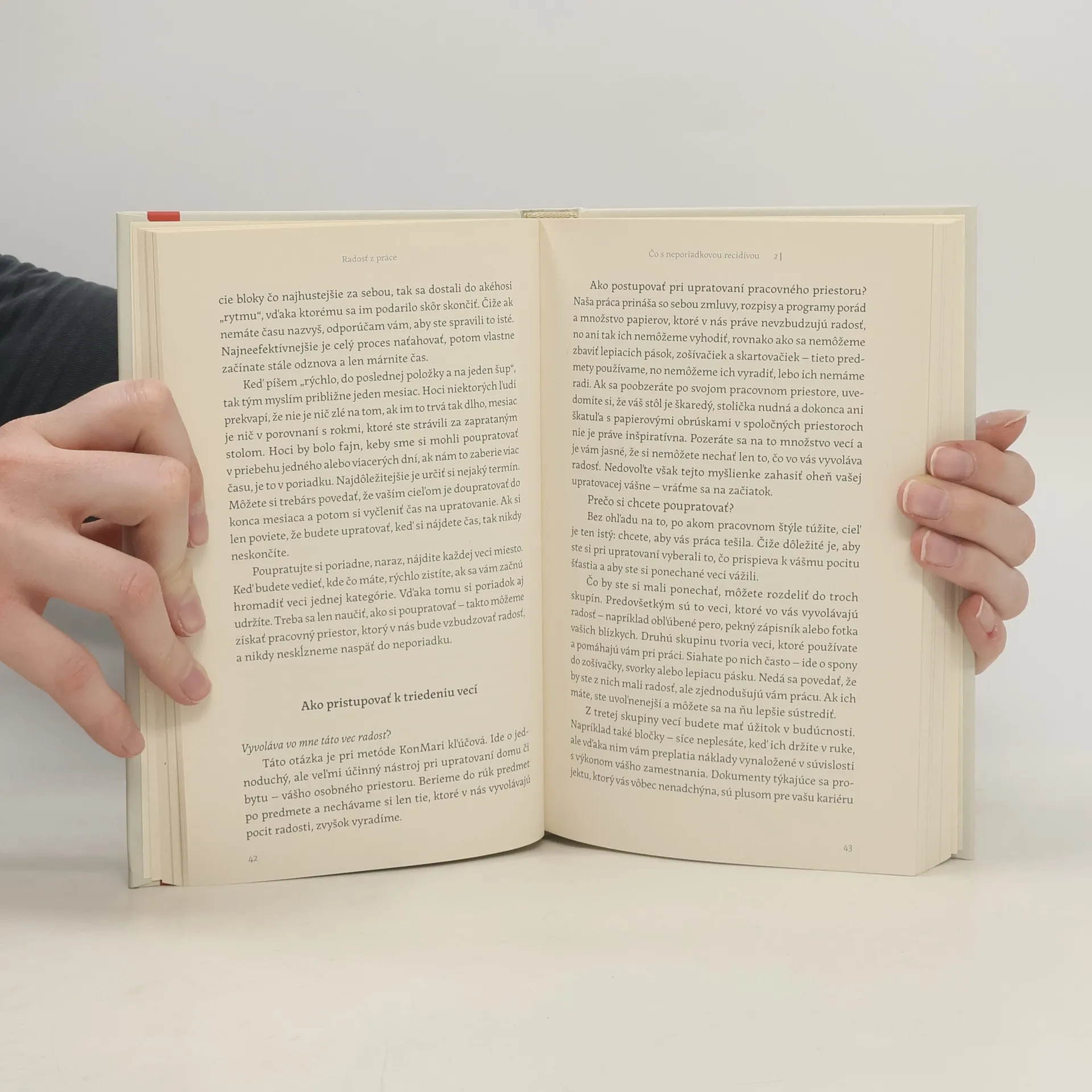 Priestor, kde sa venujeme svojej práci, priťahuje priam magicky neporiadok a chaos. Koho by nevyčerpávali zbytočné mítingy, neusporiadané dokumenty, nekonečné emaily a úlohy, z ktorých neplynie žiaden úžitok? Toto sú úskalia, ktorým čelíme takmer všetci, a hoci sa to na prvý pohľad nezdá, môžu nás obrať o radosť z práce, oklieštiť naše šance na kariérny postup a znižovať našu kvalitu života. Existuje však aj iná cesta. Autorka bestsellerov a hviezda netflixovej šou Marie Kondo vám ponúka spolu s profesorom Riceovej univerzity Scottom Sonensheinom príbehy, štúdie a stratégie, ktoré vám pomôžu skoncovať s neporiadkom a vytvoriť si priestor na to, čo je skutočne podstatné. Metóda KonMari v kombinácii s poznatkami plynúcimi z rôznych štúdií vám pomôžu zvládnuť výzvu, akou je chaos na pracovisku. S usporiadaným stolom a mysľou sa navráti aj pocit spokojnosti a šťastia.