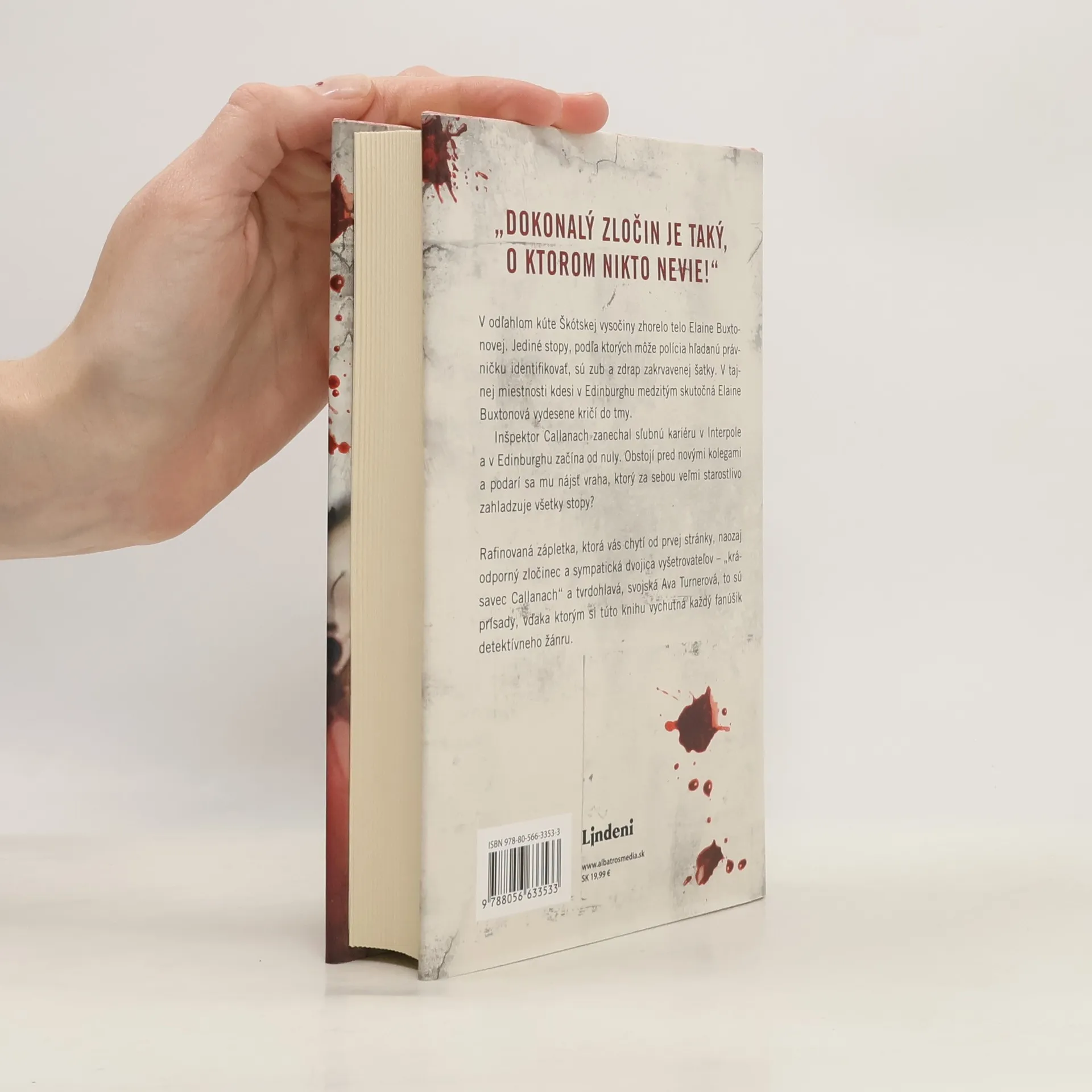V odľahlom kúte Škótskej vysočiny zhorelo telo Elaine Buxtonovej. Jediné stopy, podľa ktorých môže polícia hľadanú právničku identifikovať, sú zub a zdrap zakrvavenej šatky. V tajnej miestnosti kdesi v Edinburghu medzitým skutočná Elaine Buxtonová vydesene kričí do tmy. Inšpektor Callanach zanechal sľubnú kariéru v Interpole a v Edinburghu začína od nuly.