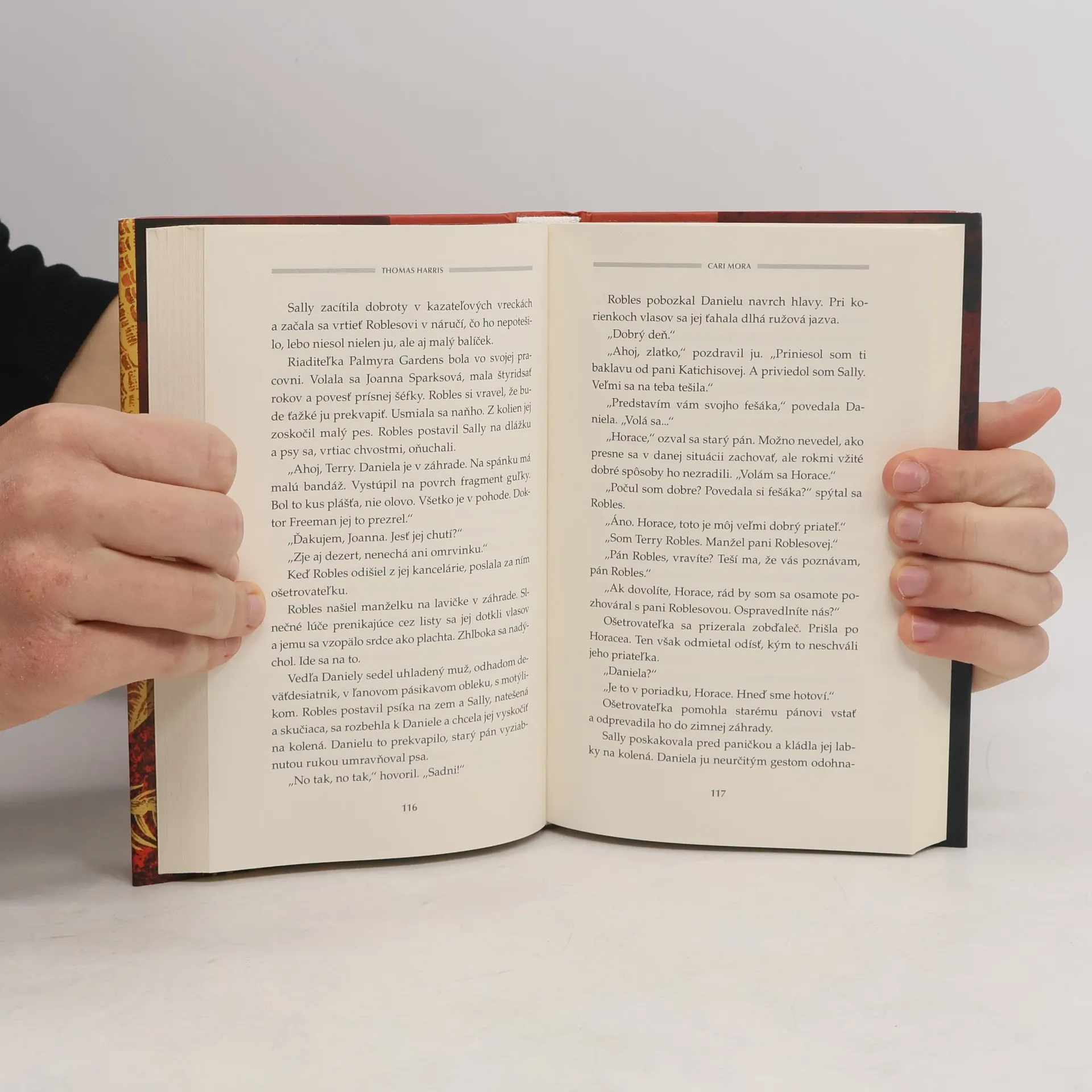 Pod vilou na morskom pobreží Miami Beach leží zlatý poklad drogového kartelu v hodnote dvadsaťpäť miliónov dolárov. Dlhé roky po ňom sliedia muži, ktorých vedie Hans-Peter Schneider, zvrhlý sadista. Živí sa zohavovaním mladých dievčat pre bohatých klientov. Cari Mora utiekla pred násilím a brutalitou z rodnej Kolumbie a vo vile na pobreží pracuje ako gazdiná. V Miami žije iba s dočasným ochranným štatútom, ktorý jej imigračný úrad môže kedykoľvek odobrať. Krásna, vojnou poznačená Cari Mora predstavuje pre Schneidera lukratívnu korisť, no po tom, ako narazí na zlato, aj vážnu prekážku. Dievčina však dobre pozná zásady prežitia v nehostinných podmienkach. Jej vlastná minulosť ju predurčila na nerovný boj. V zákutiach mužskej žiadostivosti a ženského pudu sebazáchovy striehnu monštrá. Za posledných sto rokov sa nenašiel autor, ktorý by ich priviedol k životu presvedčivejšie než Thomas Harris. Cari Mora, jeho šiesty román, je dlho očakávaný návrat americkej spisovateľskej legendy.