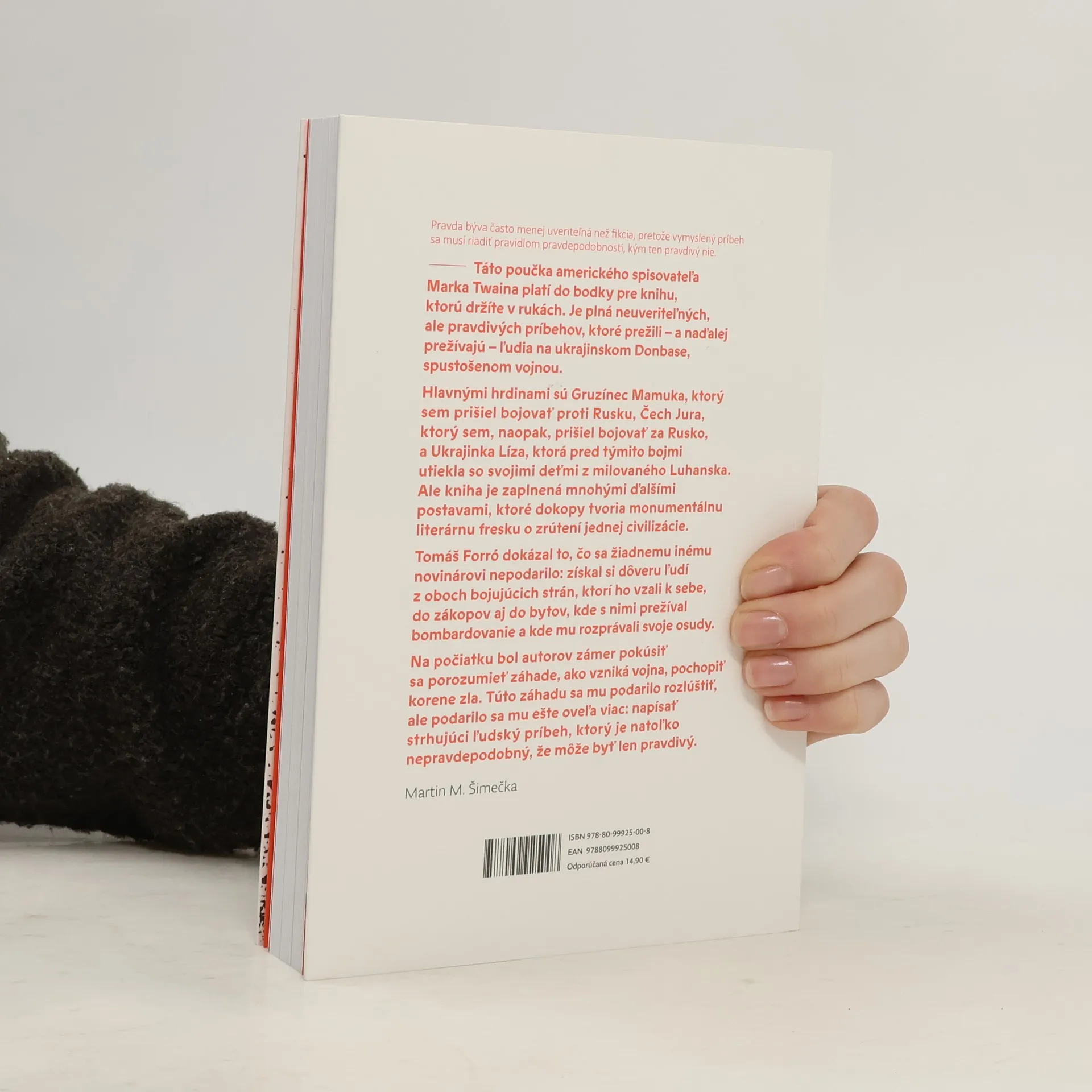 Autorská reportážna kniha o svete na oboch stranách frontovej línie Donbasu. Pravda býva často menej uveriteľná než fikcia, pretože vymyslený príbeh sa musí riadiť pravidlom pravdepodobnosti, kým ten pravdivý nie. - Táto poučka amerického spisovateľa Marka Twaina platí do bodky pre knihu pôvodných reportáží, ktorej autorom je Tomáš Forró. Je plná neuveriteľných, ale pravdivých príbehov, ktoré prežili - a naďalej prežívajú - ľudia v ukrajinskom Donbase, spustošenom vojnou. Tomáš Forró dokázal to, čo sa žiadnemu inému novinárovi nepodarilo: získal si dôveru ľudí z oboch bojujúcich strán, ktorí ho vzali k sebe, do zákopov aj do bytov, kde s nimi prežíval bombardovanie a kde mu rozprávali svoje osudy.