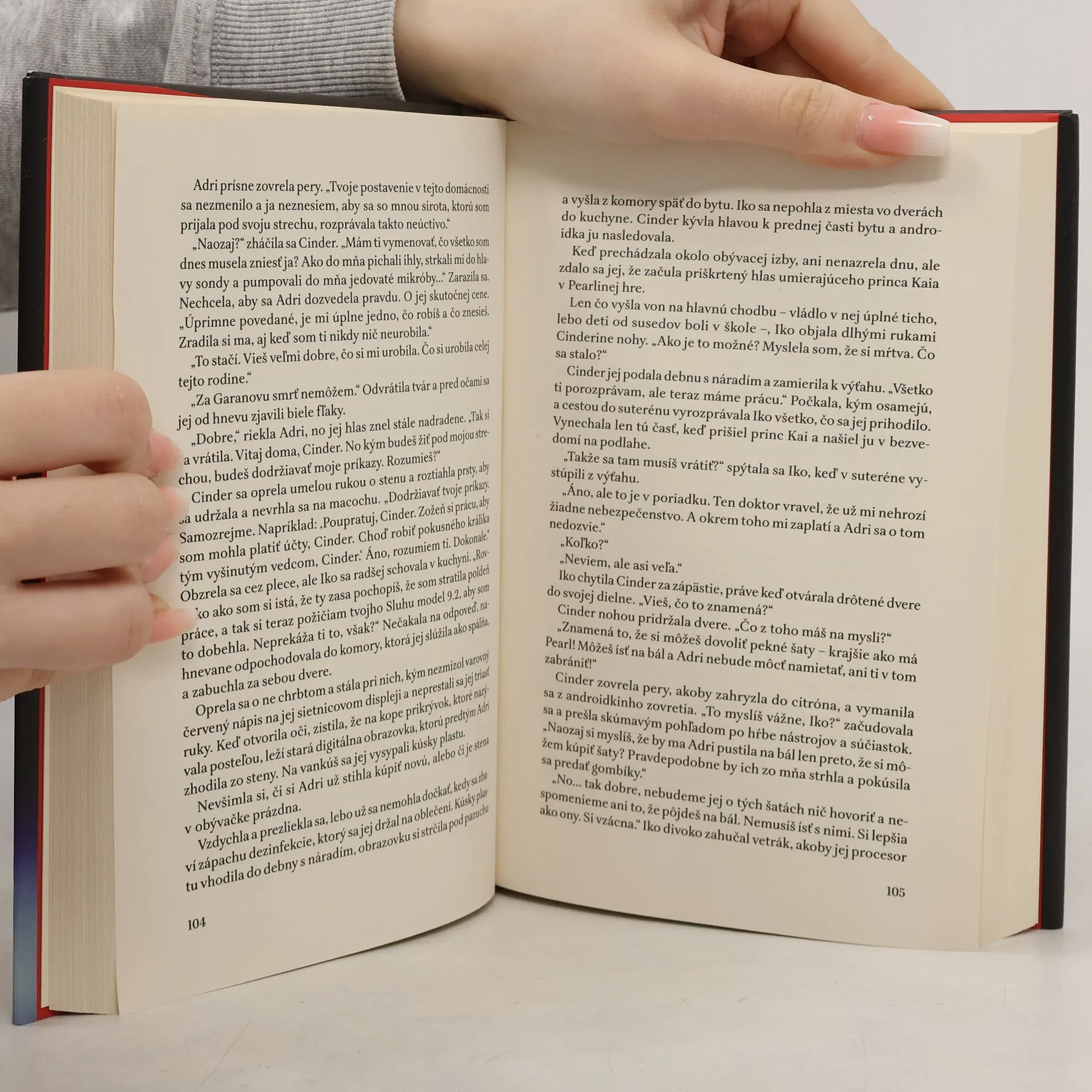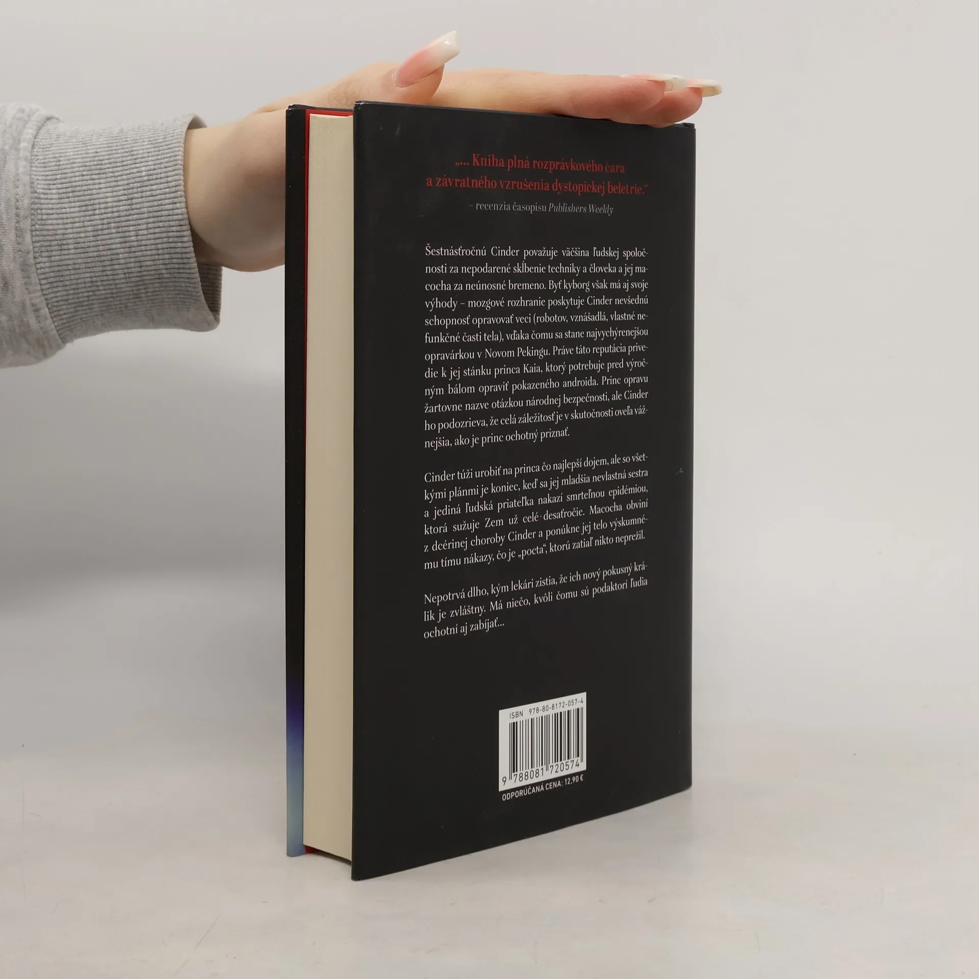 Šestnásťročnú Cinder považuje väčšina ľudskej spoločnosti za nepodarené skĺbenie techniky a človeka a jej macocha za neúnosné bremeno. Byť kyborg však má aj svoje výhody – mozgové rozhranie poskytuje Cinder nevšednú schopnosť opravovať veci (robotov, vznášadlá, vlastné nefunkčné časti tela), vďaka čomu sa stane najvychýrenejšou opravárkou v Novom Pekingu. Práve táto reputácia privedie k jej stánku princa Kaia, ktorý potrebuje pred výročným bálom opraviť pokazeného androida. Princ opravu žartovne nazve otázkou národnej bezpečnosti, ale Cinder ho podozrieva, že celá záležitosť je v skutočnosti oveľa vážnejšia, ako je princ ochotný priznať. Cinder túži urobiť na princa čo najlepší dojem, ale so všetkými plánmi je koniec, keď sa jej mladšia nevlastná sestra a jediná ľudská priateľka nakazí smrteľnou epidémiou, ktorá sužuje Zem už celé desaťročie. Macocha obviní z dcérinej choroby Cinder a ponúkne jej telo výskumnému tímu nákazy, čo je „pocta“, ktorú zatiaľ nikto neprežil. Nepotrvá dlho, kým lekári zistia, že ich nový pokusný králik je zvláštny. Má niečo, kvôli čomu sú podaktorí ľudia ochotní aj zabíjať...