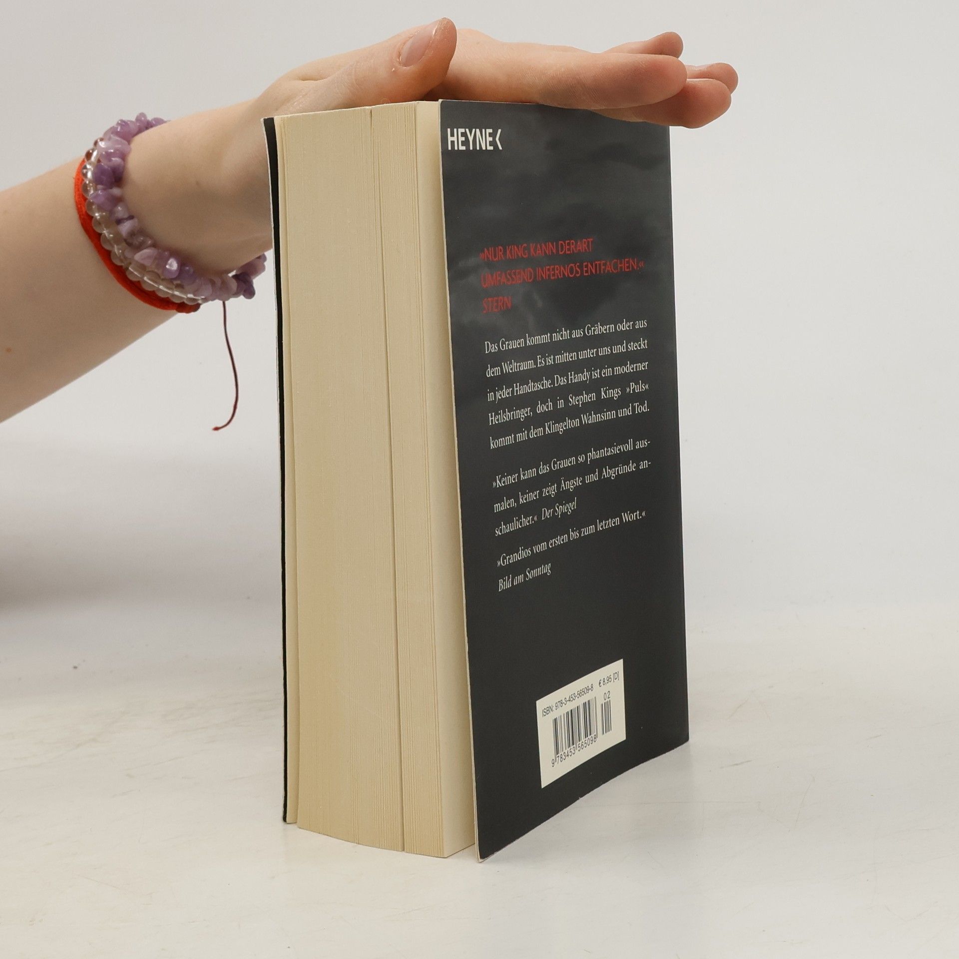 Der Horror hat eine neue Dimension Das Grauen kommt nicht aus Gräbern oder aus dem Weltraum. Es ist mitten unter uns und steckt in jeder Handtasche. Das Handy ist ein moderner Heilsbringer, doch in Stephen Kings „Puls“ kommen mit dem Klingelton Wahnsinn und Tod.Clayton Riddell ist geschäftlich in Boston, hat schon Geschenke für seine Familie besorgt und möchte sich vor der Heimfahrt gerade bei einem Straßenhändler ein Eis kaufen, als die Welt untergeht. Geschäftsleute, Schüler, Busfahrer, alle Menschen, die in diesem Moment ein Handy am Ohr haben, laufen wie auf einen geheimen Befehl hin Amok, fallen übereinander her, schlachten sich gegenseitig ab, stürzen sich ins Verderben. Irgendwie können Clay, ein kleiner Mann mit Schnurrbart und ein junges Mädchen, das beinahe von ihrer Mutter umgebracht worden wäre, sich in ein Hotel retten. Sie sind völlig abgeschnitten von der Außenwelt. Clay will unbedingt herausfinden, wie es um seine Frau und vor allem um seinen Sohn Johnny steht, der gerade in der Schule war, als der mörderische Irrsinn losging. Zu ihm muss Clay Kontakt aufnehmen, bevor ein anderer es per Handy tut. Die Suche nach Johnny wird zur Schreckensmission durch eine apokalyptische Welt.