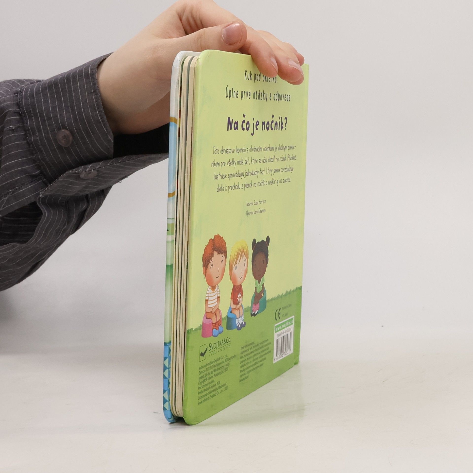 Kakáme všetci. Ale čo sa potom s vykakaným hovienkom stane? Odpovede nájdete pod okienkami v tejto knižke pre najmenších. Hovienko sa robí do plienky, splachuje sa do záchoda, zvieratká robia svoje hovienka vonku... Ale čo to vlastne hovienko je? Vieš, že sú chrobáky, ktorí si robia z hovienok guľôčky, a že králik svoje bobky dokonca je? Na všetky všetečné otázky detí na tému „Čo je to hovienko?“ nájdu bezradní rodičia odpovede v tejto úžasnej knižke s odklápacími okienkami.