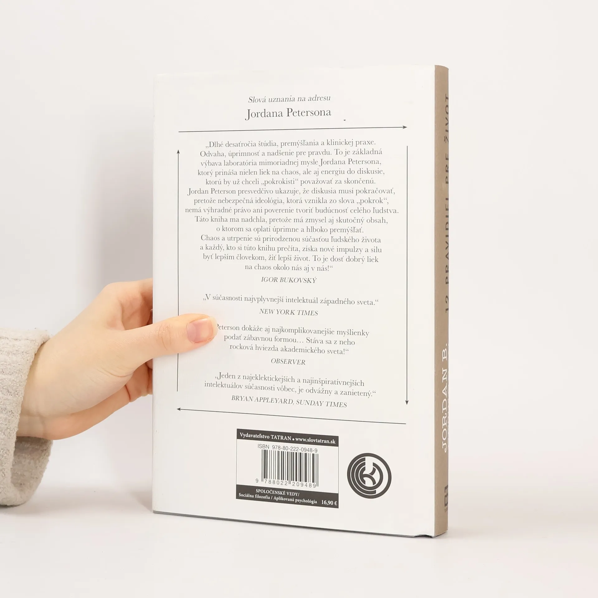 Ktoré najhodnotnejšie poznatky by mal každý vedieť? Uznávaný klinický psychológ Jordan Peterson významne ovplyvnil súčasné chápanie osobnosti. Vďaka svojim prednáškam o Biblii, ľúbostných vzťahoch, či mytológii, ktoré oslovili desiatky miliónov ľudí, ho možno zaradiť medzi najpopulárnejších mysliteľov na svete. V dobe nevídaných zmien a polarizujúcej politiky našiel jeho priamy a osviežujúci odkaz o dôležitosti osobnej zodpovednosti a starovekej múdrosti odozvu na celom svete. V tejto knihe ponúka dvanásť dômyselných a praktických princípov pre zmysluplný život, ktoré nás nabádajú, aby sme si upratali vo vlastnom dome skôr, než začneme kritizovať iných, alebo aby sme sa porovnávali so svojím včerajším ja, nie s dnešným ja niekoho iného. Ukazuje nám, že sa nemáme snažiť dosiahnuť šťastie. Namiesto toho musíme hľadať zmysel nielen pre zmysel samotný, ale aby sme sa bránili proti utrpeniu, ktoré je neoddeliteľnou súčasťou nášho života. Peterson vychádza z jasných príkladov zo svojej klinickej praxe i osobného života, z prvotriednych poznatkov psychológie a filozofie a ponaučení plynúcich z najstarších mýtov a príbehov ľudstva. Čitateľa tak pozýva na neopakovateľnú intelektuálnu cestu. 12 pravidiel pre život je pútavá, inšpiratívna kniha, ktorá ponúka liek na chaos v našich životoch: nesmrteľné pravdy aplikované na naše súčasné problémy.