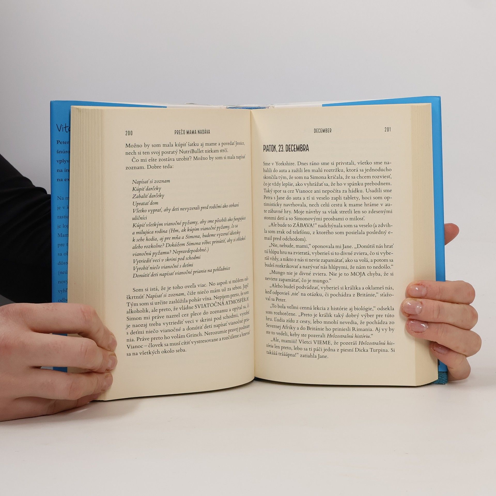 Vitajte v maminom svete... Peter je pripojený k svojmu iPadu pupočnou šnúrou, Jane chce zúfalo zbohatnúť ako vplyvná osobnosť v oblasti životného štýlu na instagrame a otecko je stále preč na exotických služobných cestách... Na mamičku dolieha stres. Jej manželstvo je v kríze, deti si robia, čo chcú, a v dome stále rastie les plesní. Iba hrdý a ušľachtilý teriér je lojálny ako vždy. Mamička si okrem toho našla novú výzvu, pracuje pre technologickú start-upovú firmu. No nielenže sa obáva, či dokáže ako štyridsaťdvaročná žena dôstojne vstať zo sedacieho vaku, ale nejako (neúmyselne) sa jej podarilo zapísať sa pred novými kolegami ako nezadaná žena bez záväzkov, vyhľadávajúca párty, čo tvrdo pracuje a nemusí odbehnúťzakaždým, keď jej ochorie pestúnka. Ako dlho dokáže hrať túto frašku a pritom nepotopiť svoju rodinu? Prejde jej, keď bude do práce nosiť „pohodlné nohavice“? A čo je dôležitejšie, nájde si čas na veľký gin s tonikom? No, zrejme nie.