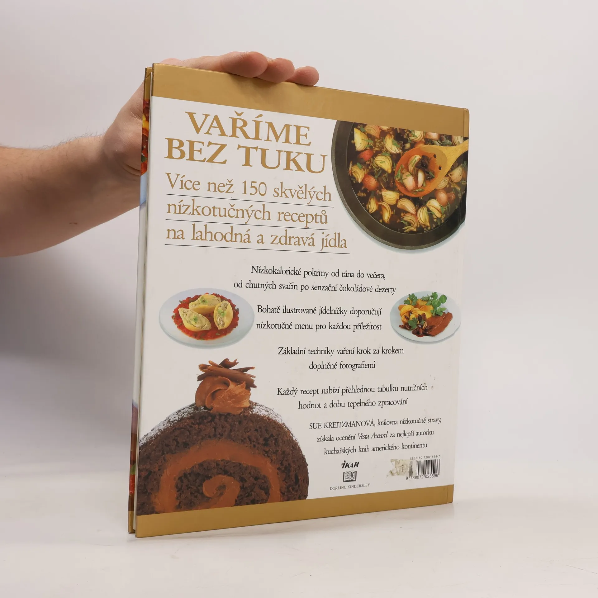 Vaříme bez tuku. Více než 150 skvělých receptů na lahodná a zdravá jídla. Nízkokalorické pokrmy od rána do večera, od chutných svačin po čokoládové dezerty. Jídelníčky doporučují nízkotučné menu pro každou příležitost. Základní techniky vaření krok za krokem doplněné fotografiemi. Každý recept nabízí přehlednou tabulku nutričních hodnot a dobu tepelného zpracování.