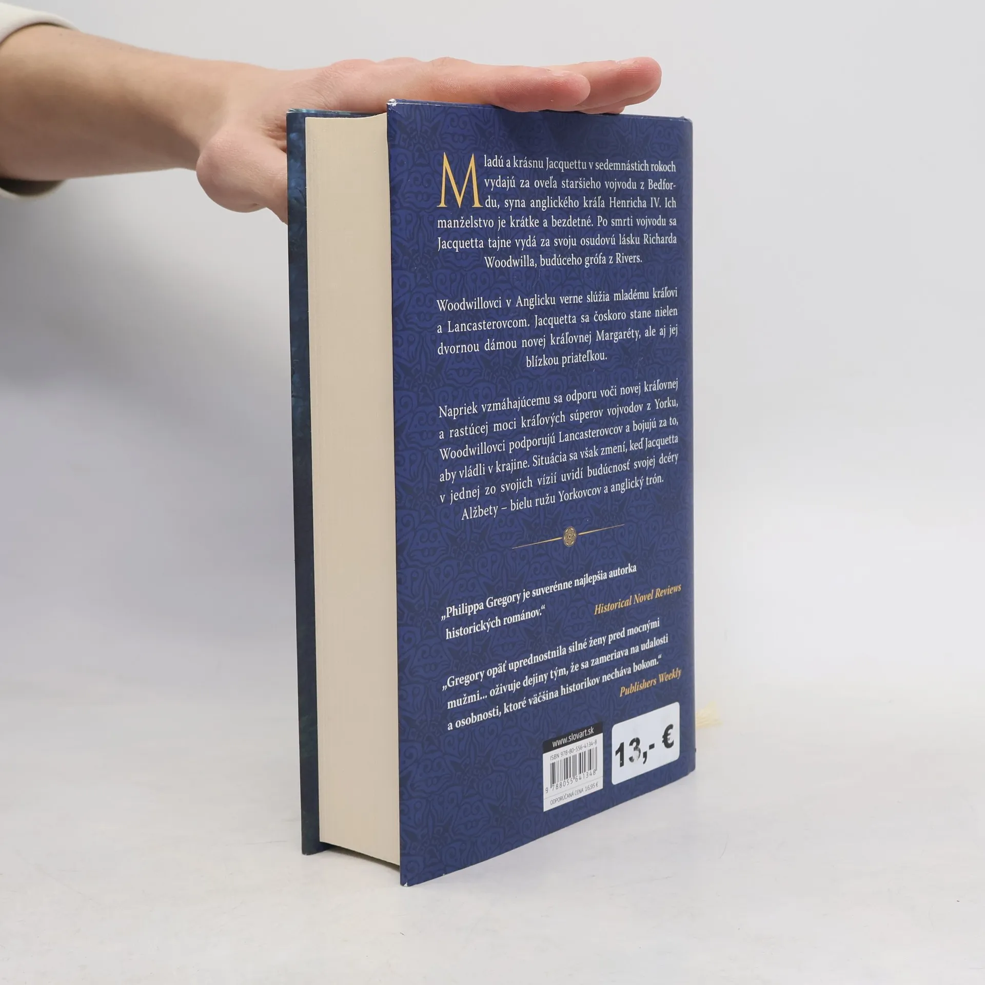 Nová séria o vojne ruží od obľúbenej autorky historických románov Katarína Aragónska - večná princezná, Druhá Boleynová a Dedičstvo Boleynovcov. Jacquetta Luxemburská, vojvodkyňa z Bedfordu a grófka z Rivers, rozpráva svoj neobyčajný životný príbeh od stretnutia s Janou z Arcu, ktorú väznili na hrade jej strýka cez sobáš s vojvodom z Bedfordu, synom anglického kráľa Henricha IV., až po manželstvo s jej osudovou láskou Richardom Woodvillom, za ktorého sa tajne vydala bez kráľovho zvolenia a mala s ním 14 detí vrátane budúcej kráľovnej Alžbety Woodvillovej. Vďaka rodinným vzťahom Woodvillovci nadobúdajú na kráľovskom dvore vplyvné postavenie aj moc a Jacquetta sa stáva hneď po kráľovnej druhou najvýznamnejšou ženou anglického dvora.