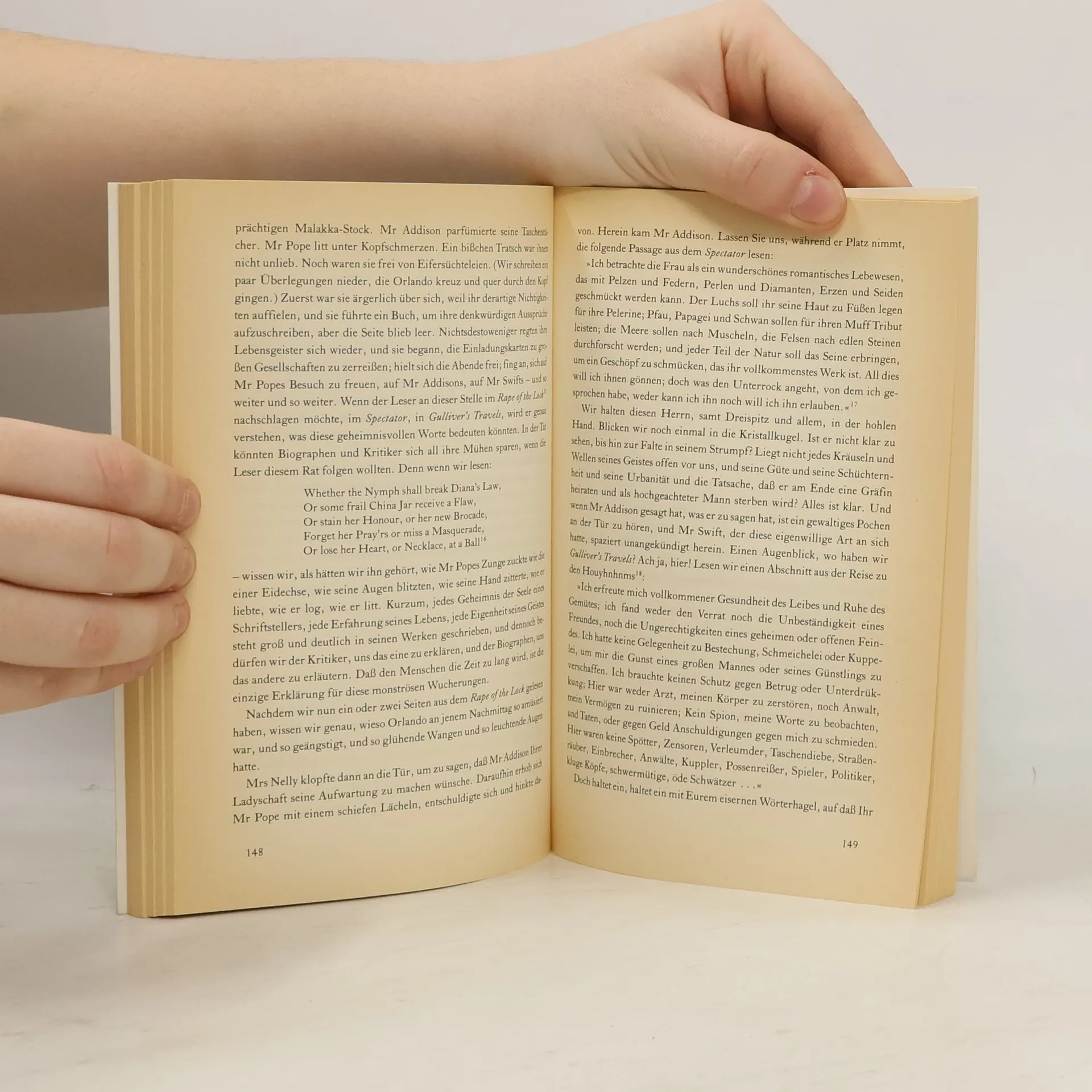 Dieses 1928 erschienene Werk beschrieb Virginia Woolf bewußt als »eine Biographie, die im Jahr 1500 beginnt und bis zum heutigen Tag führt«. Es ist eine Huldigung an ihre Freundin, die Schriftstellerin Victoria Sackville-West, von Virginia Woolf zärtlich Vita genannt. Im September 1927 schrieb Virginia in ihr Tagebuch: »Eines Tages jedoch werde ich hier die Umrisse all meiner Freunde skizzieren wie ein großes historisches Gemälde. (...) Vita sollte Orlando sein, ein junger Adeliger.«In die Neuausgabe wurden erstmals seit der englischen Erstausgabe die acht Abbildungen aufgenommen, die Virginia Woolf zur Illustration der Reise Orlandos durch die Zeit für den Roman ausgewählt hatte. Bei der neuen Übersetzung ging es vor allem darum, die Vielzahl der versteckten Zitate, die stilistischen Parodien und den »essayartigen« Charakter des Textes im Deutschen nachzuempfinden. In einem Anhang erläutert der Herausgeber die literarischen Quellen und auch die Bezüge zu Vita Sackville-West und deren Familiensitz Knole.