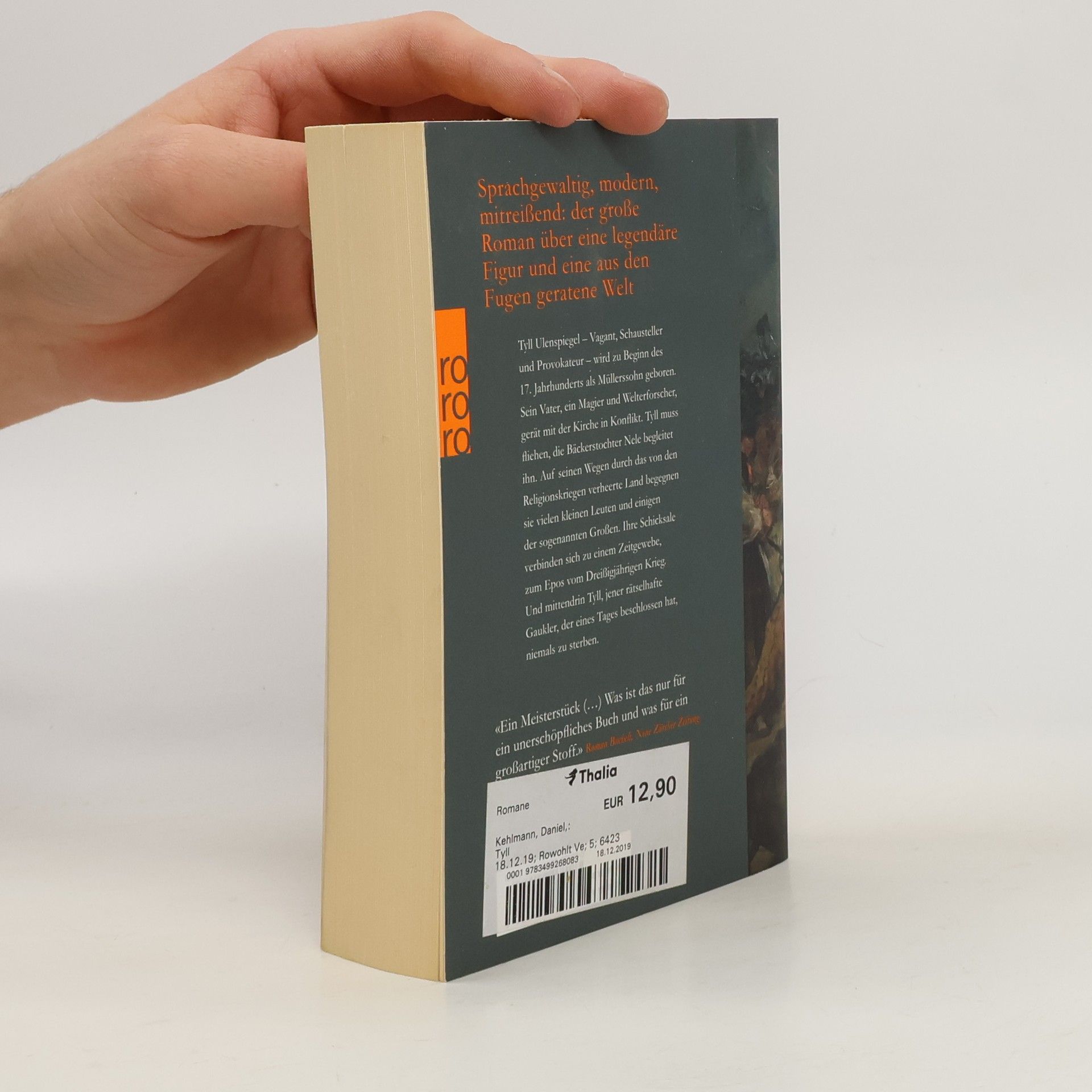 Sprachgewaltig, modern, mitreißend: Der Spiegelbestseller über eine legendäre historische Figur und eine aus den Fugen geratene Welt vom international gefeierten Daniel Kehlmann. Tyll Ulenspiegel - Vagant, Schausteller und Provokateur - wird zu Beginn des 17. Jahrhunderts als Müllerssohn geboren. Sein Vater, ein Magier und Welterforscher, gerät mit der Kirche in Konflikt. Tyll muss fliehen, die Bäckerstochter Nele begleitet ihn. Auf seinen Wegen durch das von den Religionskriegen verheerte Land begegnen sie vielen kleinen Leuten und einigen der sogenannten Großen. Ihre Schicksale verbinden sich zu einem Zeitgewebe, zum Epos vom Dreißigjährigen Krieg. Und mittendrin Tyll, jener rätselhafte Gaukler, der eines Tages beschlossen hat, niemals zu sterben.