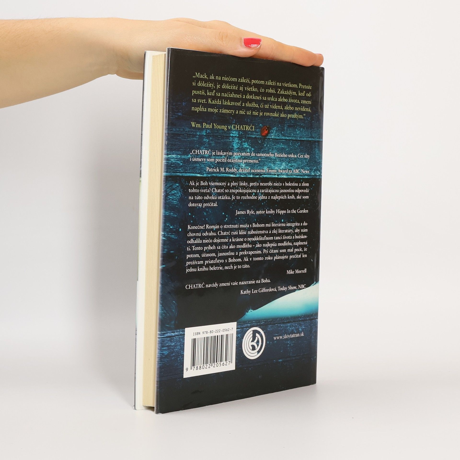 Konečne! Román o stretnutí muža s Bohom má literárnu integritu a duchovnú odvahu. Chatrč ruší klišé náboženstva a zlej literatúry, aby nám odhalila niečo dojemné a krásne o neoddeliteľnom tanci života a božskosti. Missy, najmladšiu dcéru Mackenzieho Allena Philipsa, unesú počas rodinného výletu, a v opustenej chatrči hlboko v oregonskej divočine sa nájde dôkaz, že ju zrejme brutálne zavraždili. O štyri roky neskôr, uprostred svojho Veľkého smútku, dostáva Mack podozrivý odkaz, podľa všetkého od Boha, v ktorom ho pozýva na víkendové stretnutie v tejto chatrči. Navzdory zdravému úsudku prichádza počas zimného popoludnia do chatrče a vracia sa do svojej najtemnejšej nočnej mory. To, čo tam Mack nájde, navždy zmení jeho svet. V období, keď sa náboženstvo stáva čoraz bezvýznamnejším, zápasí CHATRČ s nadčasovou otázkou: Kde je Boh vo svete, ktorý je taký plný nevýslovnej bolesti? Odpoveď, ktorú Mack dostáva, vás ohromí a azda zmení rovnako, ako zmenila jeho. Budete chcieť, aby si túto knihu prečítali všetci!