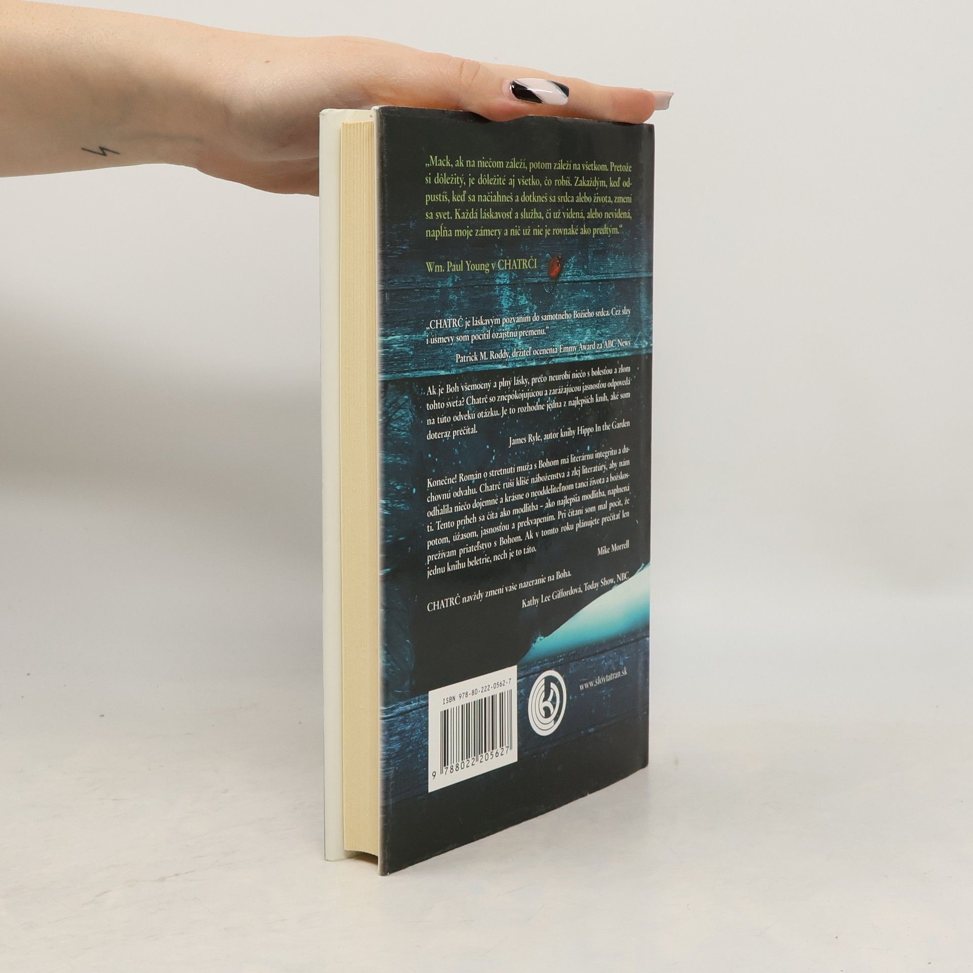 Konečne! Román o stretnutí muža s Bohom má literárnu integritu a duchovnú odvahu. Chatrč ruší klišé náboženstva a zlej literatúry, aby nám odhalila niečo dojemné a krásne o neoddeliteľnom tanci života a božskosti. Missy, najmladšiu dcéru Mackenzieho Allena Philipsa, unesú počas rodinného výletu, a v opustenej chatrči hlboko v oregonskej divočine sa nájde dôkaz, že ju zrejme brutálne zavraždili. O štyri roky neskôr, uprostred svojho Veľkého smútku, dostáva Mack podozrivý odkaz, podľa všetkého od Boha, v ktorom ho pozýva na víkendové stretnutie v tejto chatrči. Navzdory zdravému úsudku prichádza počas zimného popoludnia do chatrče a vracia sa do svojej najtemnejšej nočnej mory. To, čo tam Mack nájde, navždy zmení jeho svet. V období, keď sa náboženstvo stáva čoraz bezvýznamnejším, zápasí CHATRČ s nadčasovou otázkou: Kde je Boh vo svete, ktorý je taký plný nevýslovnej bolesti? Odpoveď, ktorú Mack dostáva, vás ohromí a azda zmení rovnako, ako zmenila jeho. Budete chcieť, aby si túto knihu prečítali všetci!