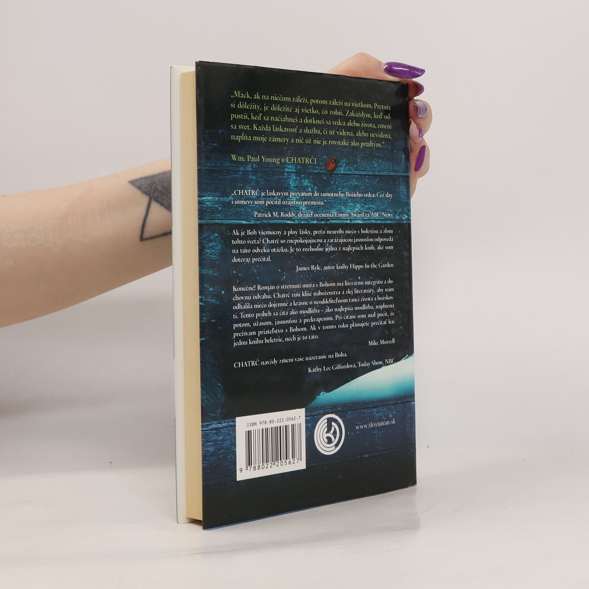 Konečne! Román o stretnutí muža s Bohom má literárnu integritu a duchovnú odvahu. Chatrč ruší klišé náboženstva a zlej literatúry, aby nám odhalila niečo dojemné a krásne o neoddeliteľnom tanci života a božskosti. Missy, najmladšiu dcéru Mackenzieho Allena Philipsa, unesú počas rodinného výletu, a v opustenej chatrči hlboko v oregonskej divočine sa nájde dôkaz, že ju zrejme brutálne zavraždili. O štyri roky neskôr, uprostred svojho Veľkého smútku, dostáva Mack podozrivý odkaz, podľa všetkého od Boha, v ktorom ho pozýva na víkendové stretnutie v tejto chatrči. Navzdory zdravému úsudku prichádza počas zimného popoludnia do chatrče a vracia sa do svojej najtemnejšej nočnej mory. To, čo tam Mack nájde, navždy zmení jeho svet. V období, keď sa náboženstvo stáva čoraz bezvýznamnejším, zápasí CHATRČ s nadčasovou otázkou: Kde je Boh vo svete, ktorý je taký plný nevýslovnej bolesti? Odpoveď, ktorú Mack dostáva, vás ohromí a azda zmení rovnako, ako zmenila jeho. Budete chcieť, aby si túto knihu prečítali všetci!