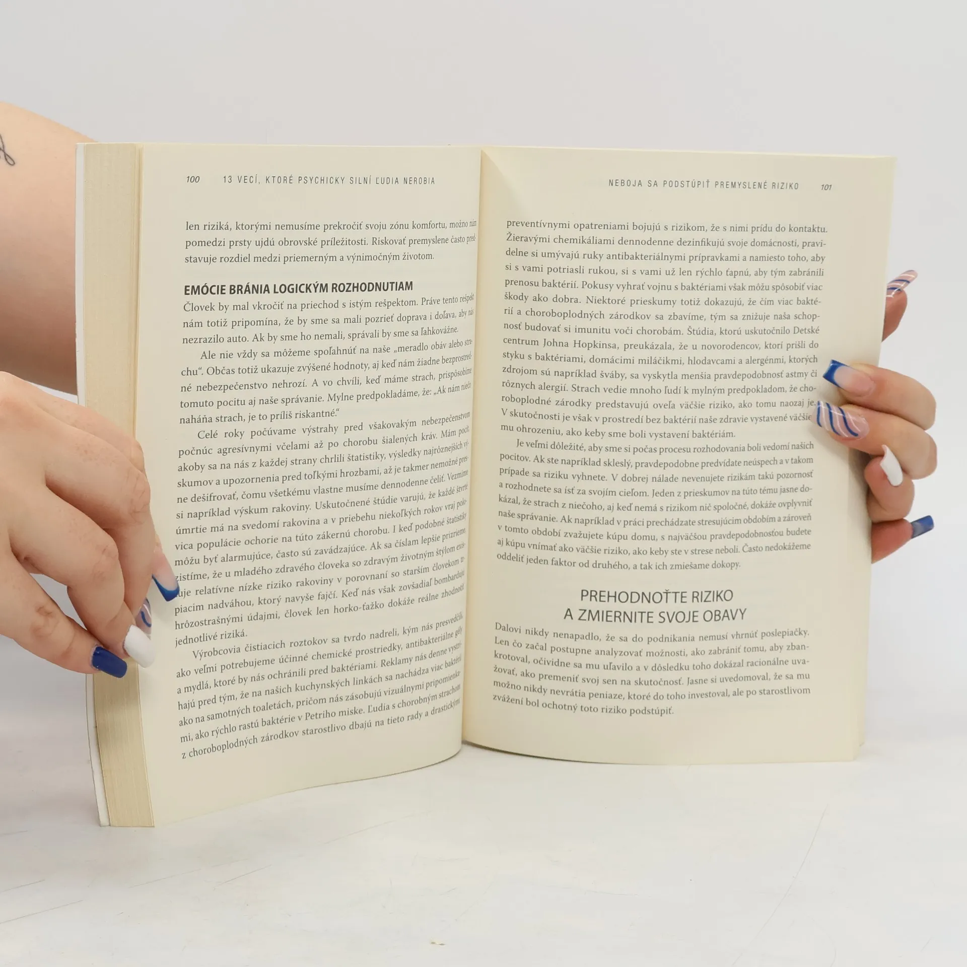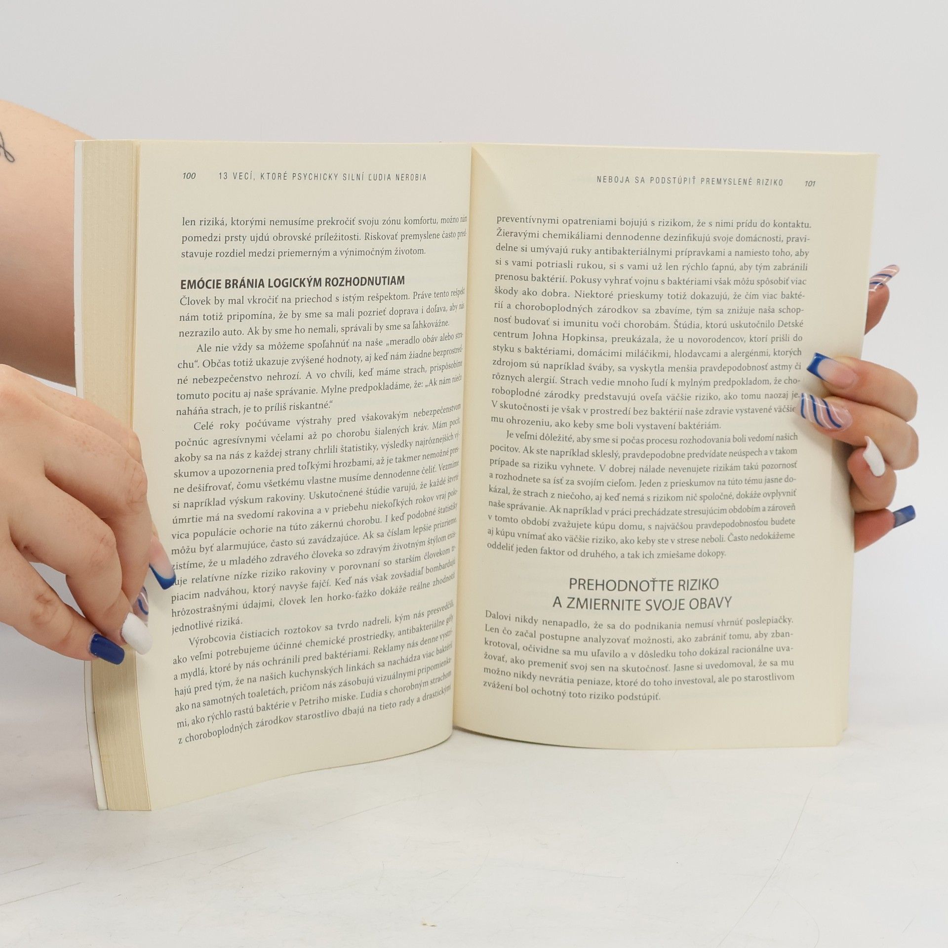 Ako je možné, že niektorí ľudia dokážu byť šťastní a dosahovať úspechy, aj napriek nespočetným životným skúškam, ktorým neustále čelia? Z čoho pramení ich vnútorná vyrovnanosť a sila zvládnuť každú životnú situáciu? Nad týmito otázkami sa zamyslela aj psychoterapeutka Amy Morin, ktorá vo svojej knihe nepíše o tom, čo všetko pre dosiahnutie vyrovnaného života treba robiť, ale o tom, čo stačí nerobiť. Svoje myšlienky predstavuje v širšom koncepte osobnej psychickej sily, ktorá ovplyvňuje naše myslenie a následne aj správanie voči sebe či iným ľuďom. V každej kapitole tejto knihy sa venuje jednej veci, ktorú ľudia vplyvom okolností zvyknú robiť a neuvedomujú si, že sami (a často nechtiac) tak zo seba robia zúfalcov či slabochov. Následne dáva čitateľom inštrukcie, ako tento prejav zo života prirodzene vylúčiť a nahradiť ho prejavom psychicky silnej, vnútorne vyrovnanej osobnosti, schopnej čeliť akejkoľvek situácii.