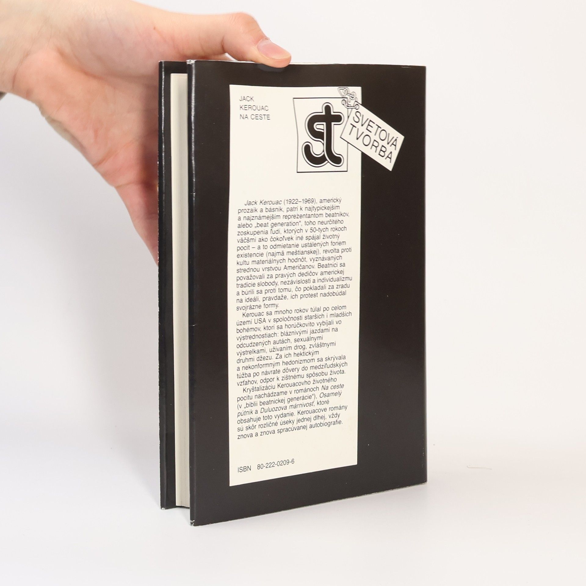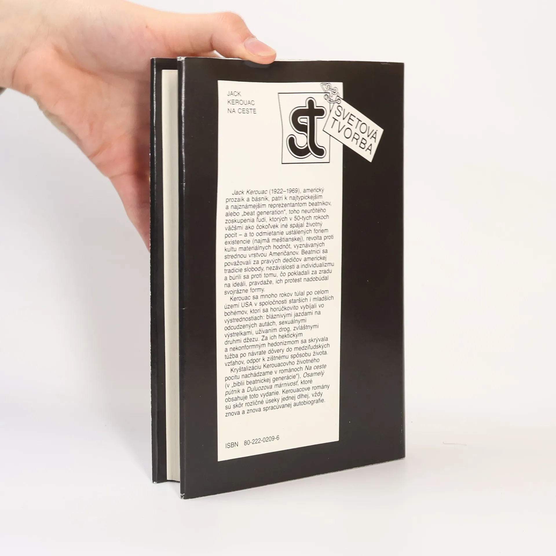 Obsah knihy: Na ceste Osamelý pútnik Duluozova márnivosť BOL SOM TU alebo AKO NEUMRIEŤ (Juraj Kiška) Život a tvorba J. Kerouaca (Juraj Kiška) Kultový román a základný literárny odkaz beatnického hnutia zachytáva generačnú výpoveď mládeže, ktorá reagovala na situáciu koncom 40-tych a začiatkom 50. rokov 20. storočia. V období vrcholnej hospodárskej stability sa začali prejavovať neduhy americkej civilizácie. Beatnici odmietli ideál úspešného Američana a zvolili si cestu protestu a úteku od civilizačných vymožeností, pričom sa snažili intenzívnejšie prežívať prítomnosť. Hlavná línia rozprávania sleduje hrdinove cesty po USA, kde sa extáza z nových zážitkov mieša s nostalgiou a bezvýchodiskovosťou takéhoto úteku. V autobiografickej výpovedi vystupujú známe postavy ako Carlo Marx, Bull Lee a Dean Moriarty. Kerouackovi sa podarilo napísať "bibliu", ktorá zásadne ovplyvnila názory celej generácie. Osamelý pútnik je kratšia próza, v ktorej autor opisuje svoje zážitky z obdobia, keď pracoval ako čašník na nákladnej lodi plaviacej sa do Panamy. Duluozova márnivosť rozpráva o jeho živote, vrátane spomienok na strednú školu, univerzitu a pôsobenie v armáde a námorníctve, pričom sa objavujú aj postavy ako Irwin garden a Will Hubbard.