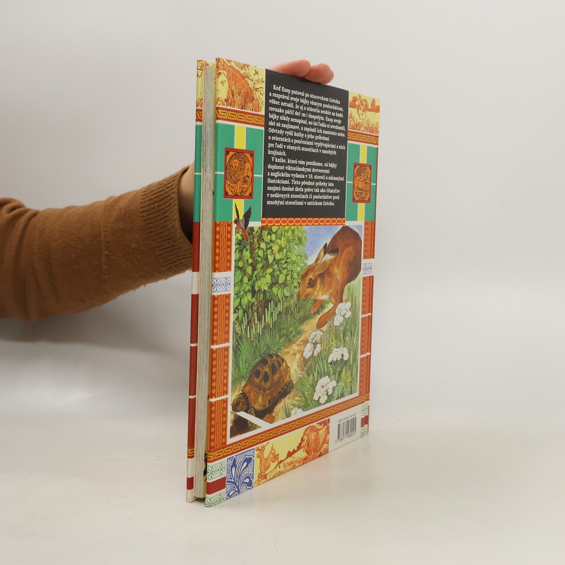 Ezop bol múdry Grék, ktorý svojimi bájkami ľudí učil, ako sa majú správať, čo robiť a čo nerobiť. Aby mohol vhodne zobraziť ľudský život a mravy, nechal vo svojich bájkach účelne hovoriť vtáky, stromy, divoké i domáce zvieratá, vlky, líšky, levy, voly, ovce, kozy alebo iné živočíchy a veci. Bohato ilustrovaná kniha. Nájdete v nej známe aj menej známe bájky s poučením, vhodné pre deti aj dospelých.