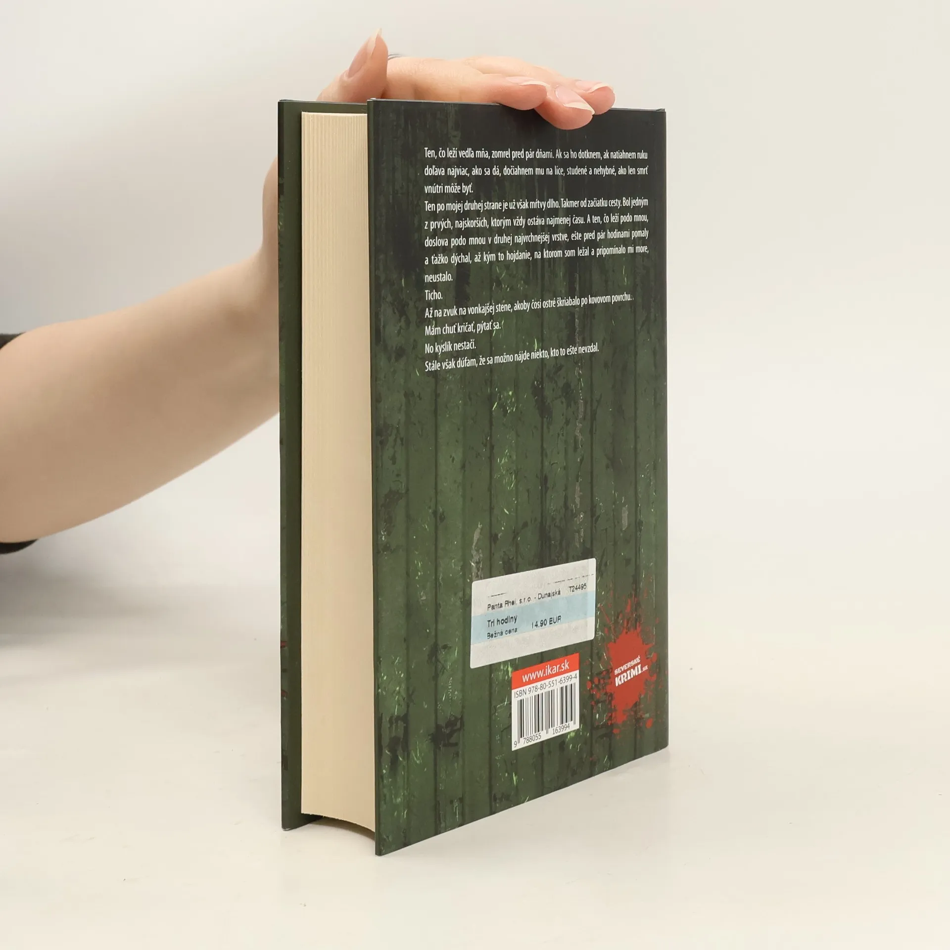 Ak človek kalkuluje s časom sám a má nad ním kontrolu, sú aj tri sekundy či tri minúty večnosťou. Tri hodiny v rukách niekoho iného sú však, paradoxne, oveľa kratšie. V pokojné štokholmské ráno dostáva komisár Ewert Grens nanajvýš podivné hlásenie. V márnici Södermalmskej nemocnice cez noc pribudlo neidentifikované mužské telo. Zatiaľ čo sa komisár pokúša dopátrať, o koho ide a ako sa do zamknutej miestnosti dostalo, Piet Hoffmann sa v páľave afrického slnka venuje novej práci. Má pred sebou poslednú nebezpečnú misiu pred návratom domov, kde ho už čaká manželka Zofia s chlapcami. Posledná úloha ho cez vyschnutú púšť a divoké more prenesie do sveta, kde sa hodnota ľudského života počíta v bankovkách. Do sveta, kde sú tri hodiny rozdielom medzi životom a smrťou. Komisár Ewert Grens a bývalý infiltrátor Piet Hoffmann sa opäť stretávajú zoči-voči, hoci sa už nikdy nemali vidieť. Nepriatelia? Spojenci? Čo všetko musia stihnúť za tri hodiny?