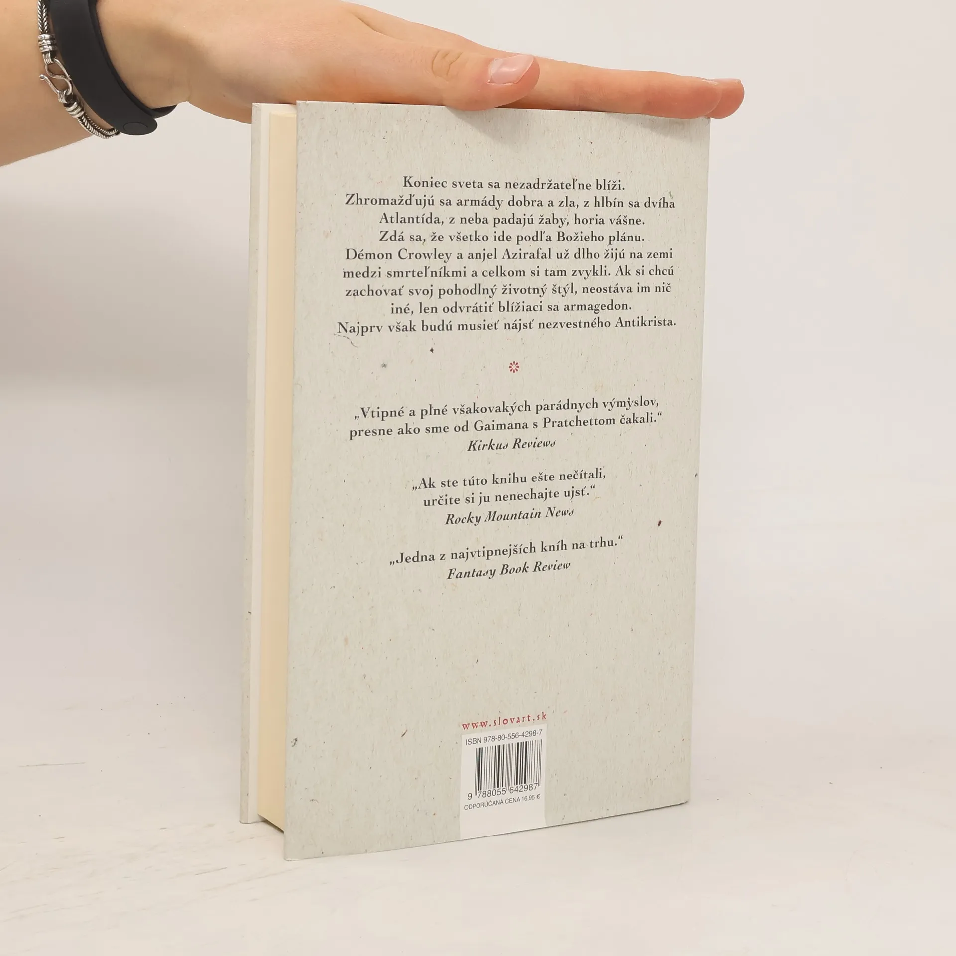 Spoločný román dvoch majstrov literárnej fantastiky. Koniec sveta sa nezadržateľne blíži. Zhromažďujú sa armády dobra a zla, z hlbín sa dvíha Atlantída, z neba padajú žaby, naplno horia vášne. Zdá sa, že všetko ide presne podľa Božieho plánu. Démon Crowley a anjel Azirafal už dlho žijú na zemi medzi smrteľníkmi a celkom si tu zvykli. Ak si chcú zachovať svoj pohodlný životný štýl, neostáva im nič iné, len odvrátiť hroziaci armagedon. Najprv však budú musieť nájsť nezvestného Antikrista. Román Dobré znamenia prvý raz vyšiel v roku 1990 a v roku 2019 sa dočkal filmového spracovania v podobe rovnomenného seriálu.