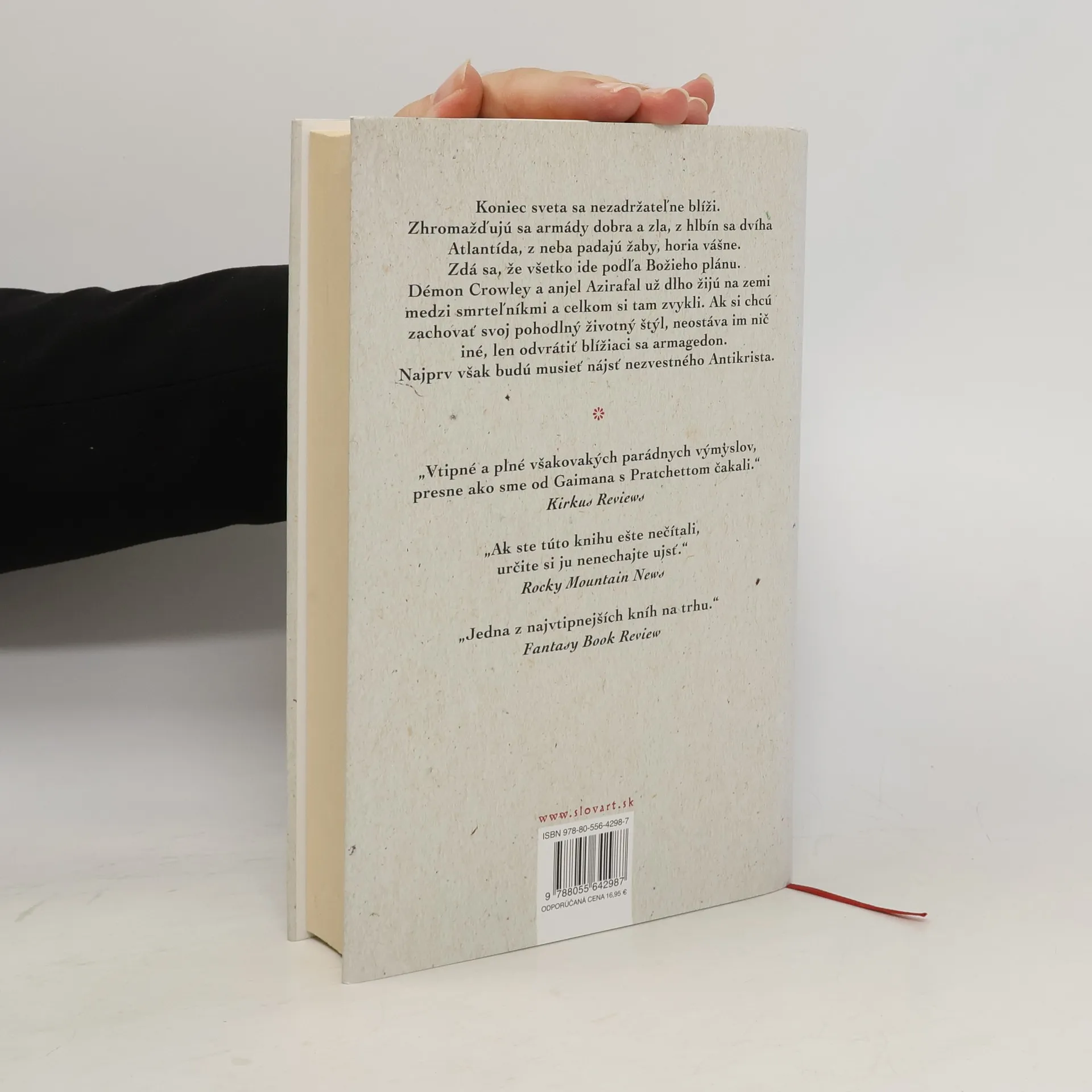Spoločný román dvoch majstrov literárnej fantastiky. Koniec sveta sa nezadržateľne blíži. Zhromažďujú sa armády dobra a zla, z hlbín sa dvíha Atlantída, z neba padajú žaby, naplno horia vášne. Zdá sa, že všetko ide presne podľa Božieho plánu. Démon Crowley a anjel Azirafal už dlho žijú na zemi medzi smrteľníkmi a celkom si tu zvykli. Ak si chcú zachovať svoj pohodlný životný štýl, neostáva im nič iné, len odvrátiť hroziaci armagedon. Najprv však budú musieť nájsť nezvestného Antikrista. Román Dobré znamenia prvý raz vyšiel v roku 1990 a v roku 2019 sa dočkal filmového spracovania v podobe rovnomenného seriálu.
