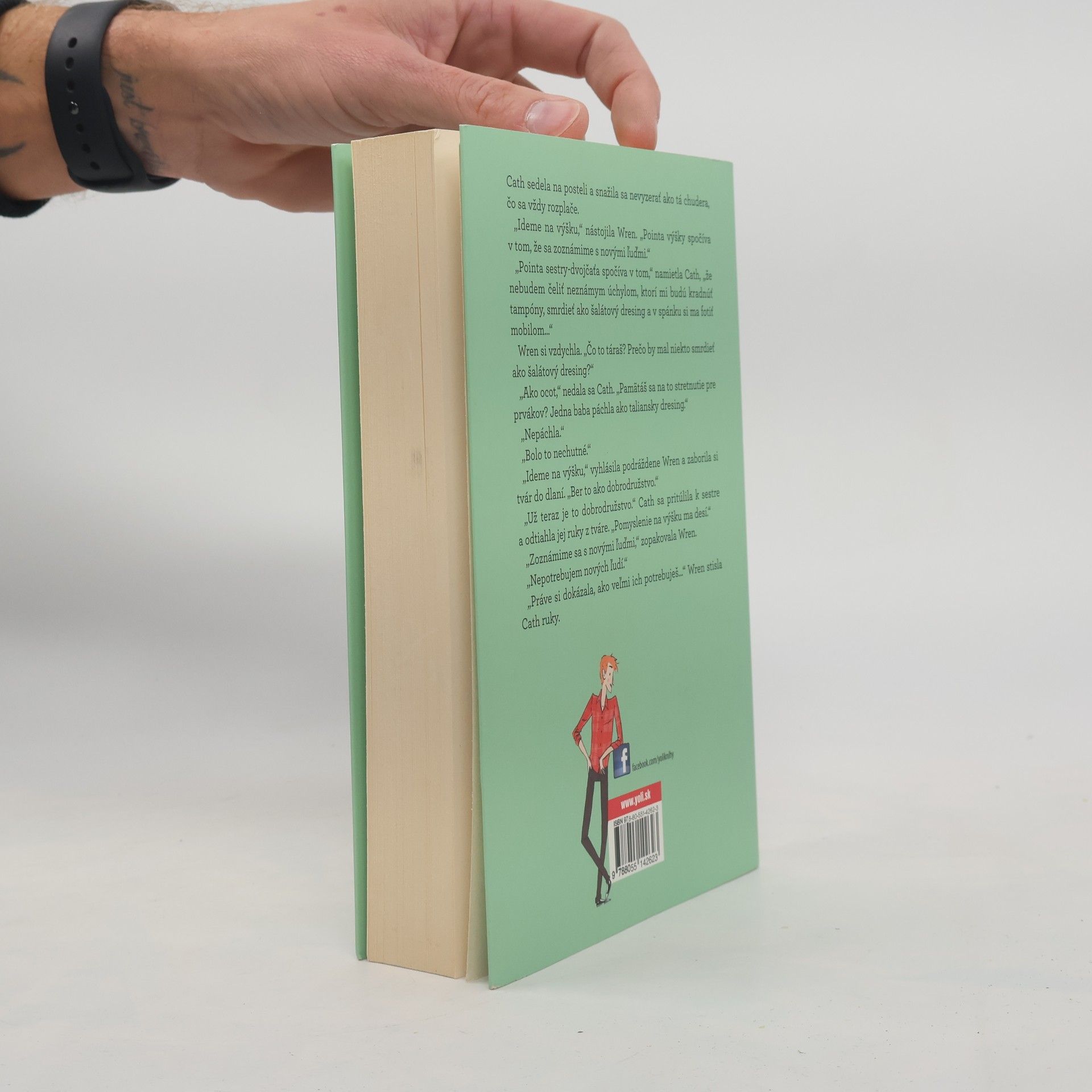 Cath je fanúšička seriálového hrdinu Simona Snowa. Jasné, celý svet zbožňuje Simona Snowa... Ale Cath je fanúšičkou celý svoj život a je v tom fakt dobrá. So sestrou dvojčaťom Wren sa ešte ako deti ukryli v Simonovom svete a pomohlo im to zvládnuť matkin odchod. Čítanie. Druhé čítanie. Vypisovanie na fanúšikovské fóra, písanie fanfiction, prezliekanie sa za postavy na každú filmovú premiéru. Cathina sestra už z fandomu vyrástla, ale Cath to nedokáže. Ani nechce. Obe sestry majú osemnásť a idú na výšku. Wren nečakane vyhlási, že nechce v internáte bývať s Cath, aby bola nezávislejšia. Dvojčatá sa rozdelia a Cath je vydaná napospas namosúrenej spolubývajúcej a jej očarujúcemu frajerovi. Jej profesorka si myslí, že fanfiction je koniec civilizácie, a pekný spolužiak sa chce rozprávať iba o slovách... Popri tom všetkom sa Cath ustavične bojí o milujúceho, no zraniteľného otca, ktorý ešte nikdy nezostal sám. Otázka znie: Zvládne to Cath? Dokáže to, aj keď ju Wren nebude držať za ruku? Je pripravená žiť vlastný život? A chce vôbec vykročiť vpred, ak to znamená, že musí opustiť Simona Snowa?