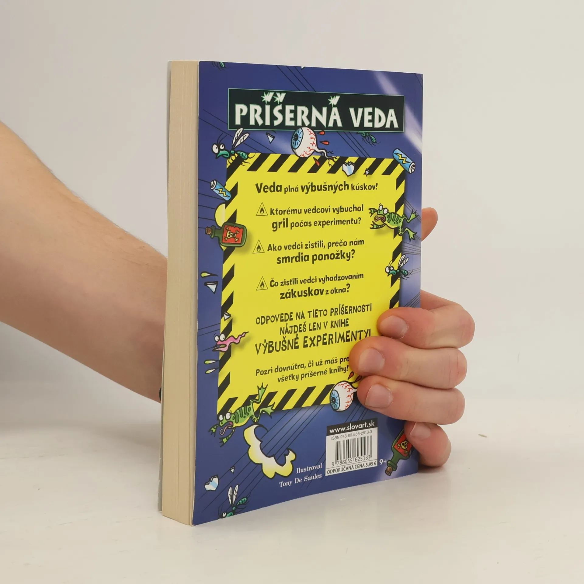 Vitajte pri výbušných experimentoch! Toto je kniha experimentov, ktoré môžeš vyskúšať, no zároveň je to aj kniha o experimentoch a o ľuďoch, čo tie experimenty robia. Keďže Výbušné experimenty patria do série Príšerná veda, stretneš tu zopár príšerných ľudí. Muža, čo ponúkal deťom na jedenie psie výkaly, vojaka, čo len tak zo srandy strieľal po svojom domovníkovi, vedca, ktorý premenil netopiere na zápalné bomby, i takého, čo si rozpustil vlastné prsty, a inžiniera, ktorý vyhodil do vzduchu záhradný gril. Toto je kniha plná vážne príšerných experimentov... Tak naber odvahu a čítaj!