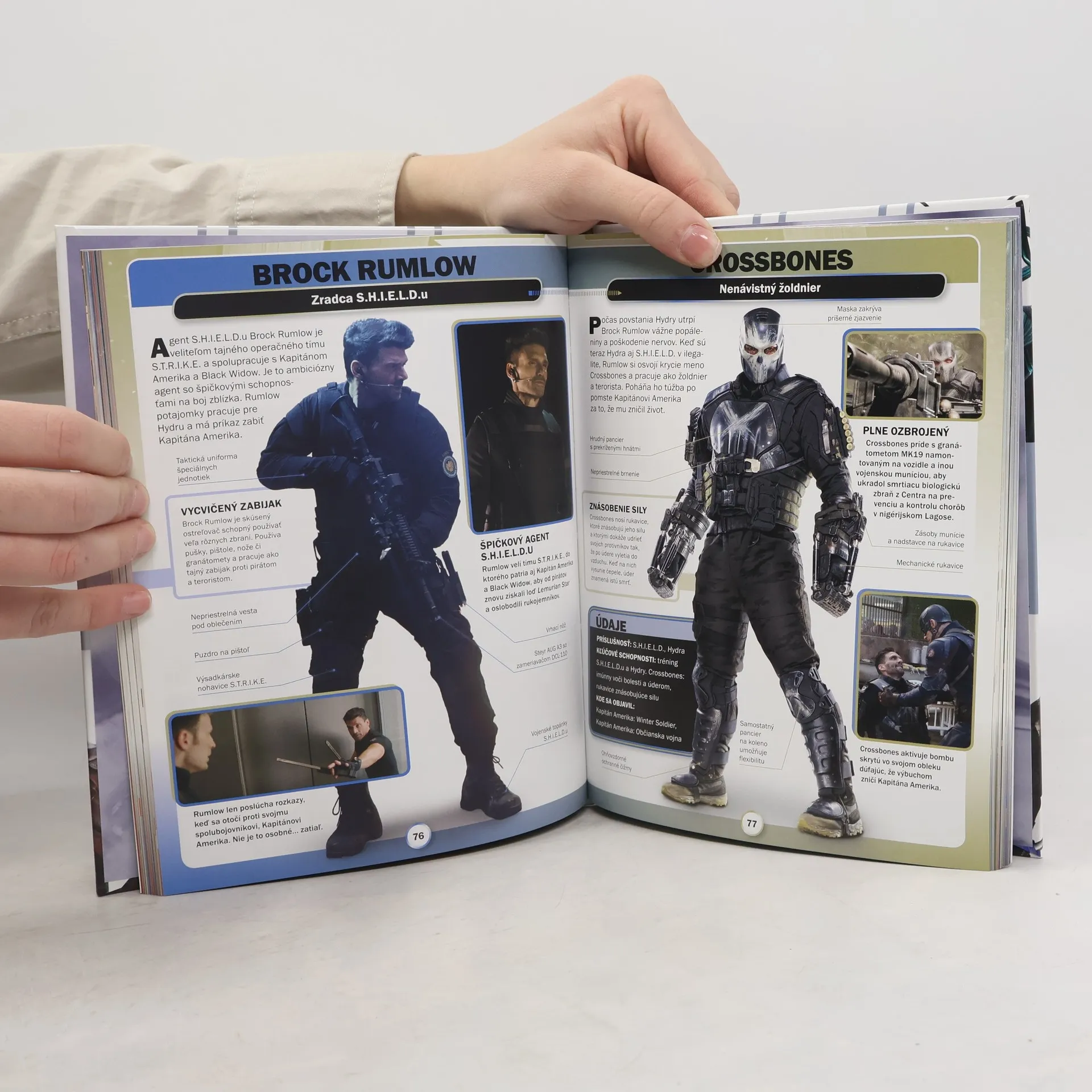 Stretnite sa s hrdinami a zloduchmi filmového sveta štúdia Marvel! Nájdete tu fascinujúce fakty o vašich obľúbených postavách zo všetkých strhujúcich filmov štúdia Marvel – od všetkých členov tímu Avengers až po zlovestného Dormammua.