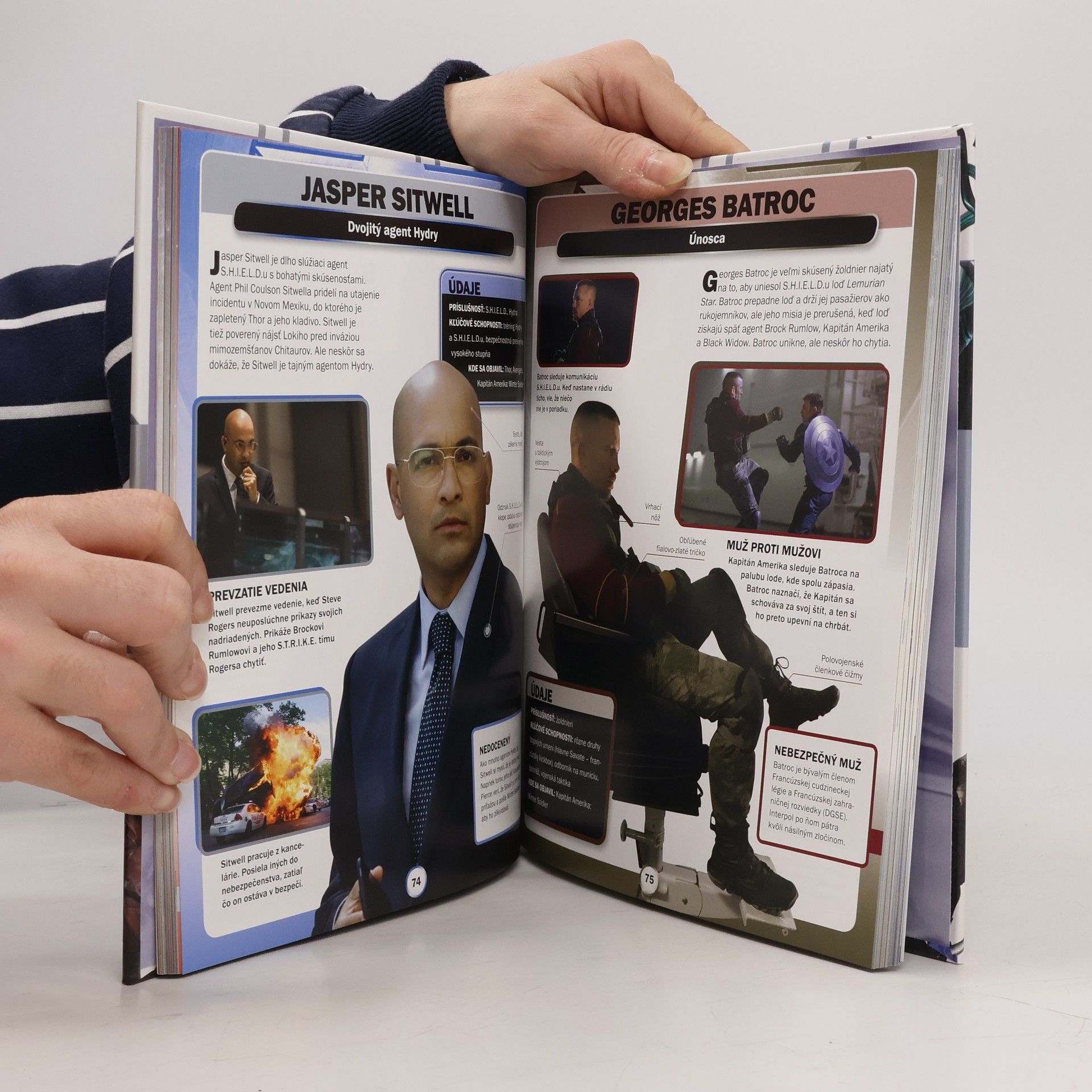 Stretnite sa s hrdinami a zloduchmi filmového sveta štúdia Marvel! Nájdete tu fascinujúce fakty o vašich obľúbených postavách zo všetkých strhujúcich filmov štúdia Marvel – od všetkých členov tímu Avengers až po zlovestného Dormammua.