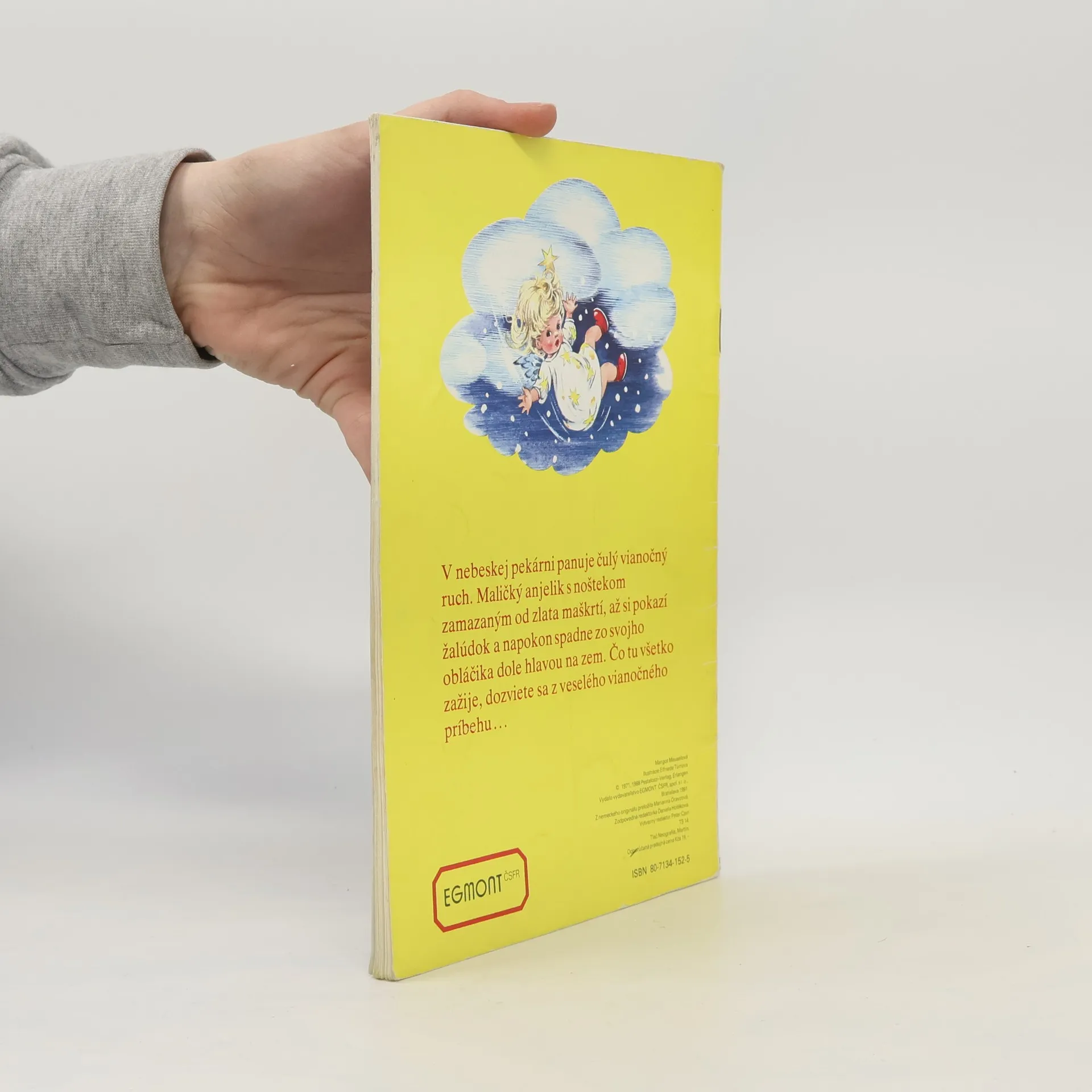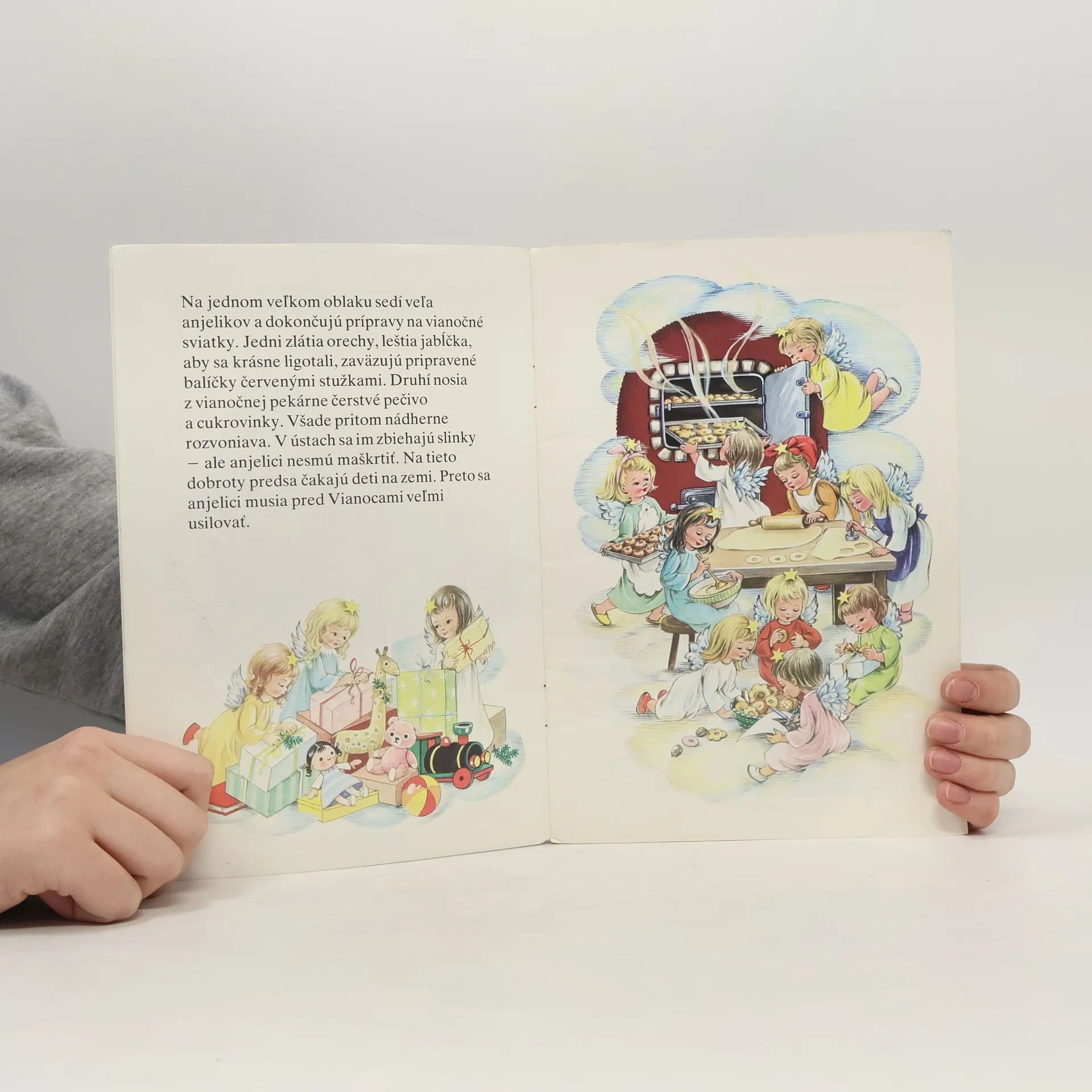 V nebeskej pekárni panuje čulý vianočný ruch. Maličký anjelik s noštekom zamazaným od zlata maškrtí, až si pokazí žalúdok a napokon spadne zo svojho obláčika dole hlavou na zem. Čo tu všetko zažije, dozviete sa z veselého vianočného príbehu...
