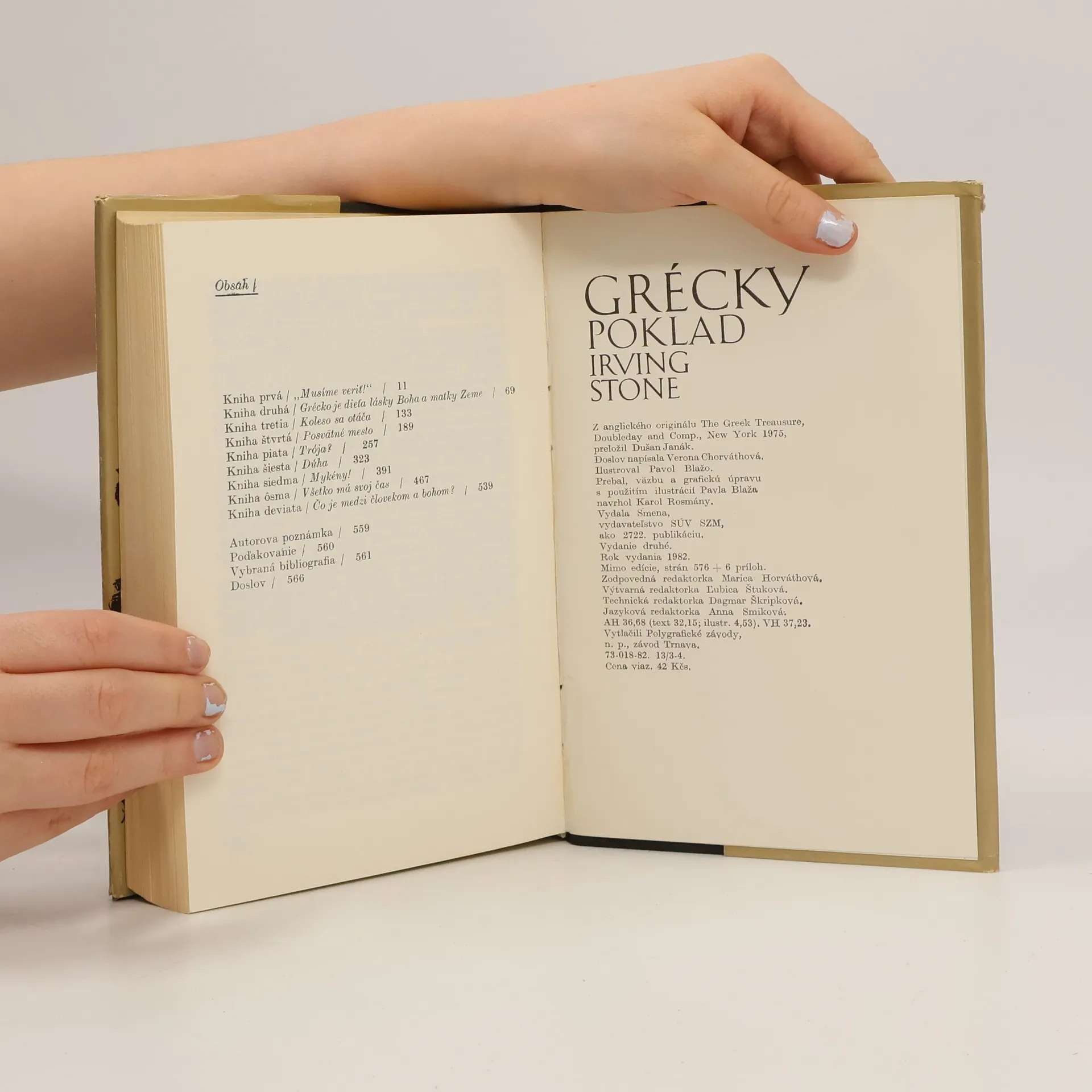 Po románoch Smäd po živote a Agónia a extáza ponúkame slovenským čitateľom nové vydanie ďalšieho vynikajúceho románu z pera majstra životopisného žánru. Irving Stone v ňom nesmierne pôsobivo zobrazil životné osudy geniálneho objaviteľa Tróje a Mykén – priekopníka modernej archeológie Heinricha Schliemanna a jeho gréckej manželky Sofie. Keď sa Heinrich a Sofia zoznámili, bol Schliemann bohatým svetobežníkom, rojkom, ktorý si zaumienil, že objaví Homérovu Tróju. Bol to jeho detský sen, keďže už ako mladý chlapec podľahol čaru Iliady a Odysey a uveril, že mýtická Trója nie je len výplodom básnikovej fantázie. Pre tento životný sen sa mu podarilo nadchnúť aj mladučkú, vzdelanú a bystrú Sofiu, ktorá sa mu stala oporou a aktívnou spolupracovníčkou pri vykopávkach. Predstavitelia oficiálnej vedy Schliemannom opovrhovali, označovali ho za diletanta, no tento húževnatý amatérsky nadšenec napokon vtedajším vedeckým kapacitám dokázal, že mal vo svojich teóriách pravdu. Životný príbeh manželov Schliemannovcov vyrozprávaný aj z pohľadu Sofie, odvážnej, silnej ženy, v ktorej Heinrich našiel svoj „grécky poklad“, je nádherným dôkazom nezlomnosti ľudského ducha, a preto aj dnes môže byť pre nás inšpiráciou.
