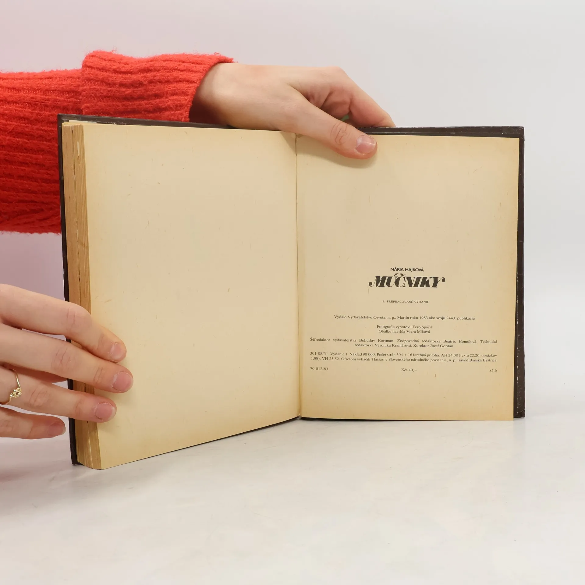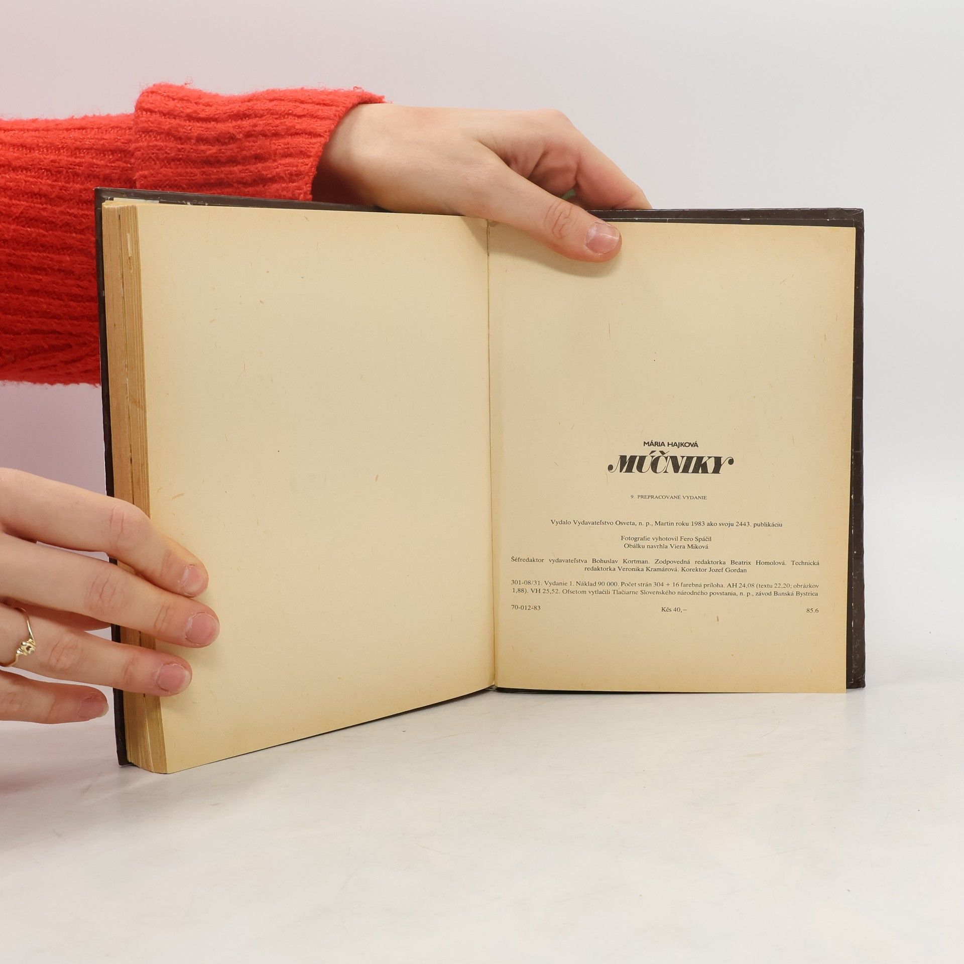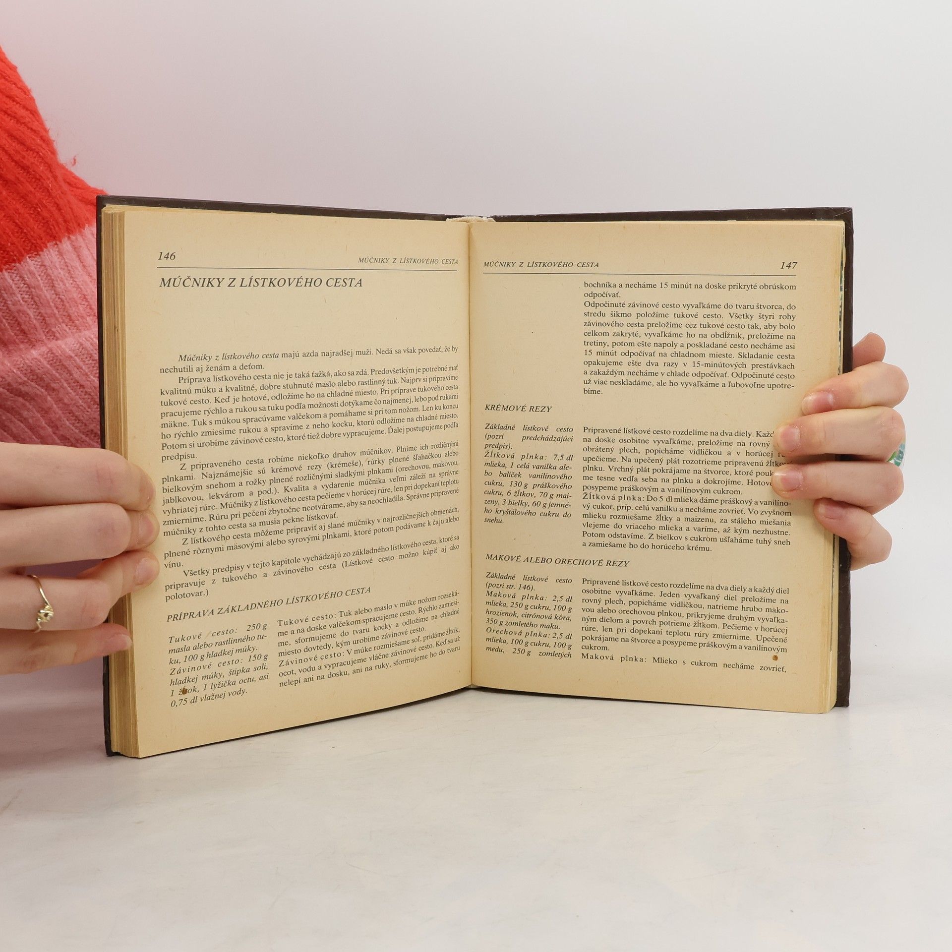 Moučníková kuchařka 9. přepracované vydání. Obsah: Na čo pamätať pri príprave múčnikov, Ako pripravovať múčniky, Jemné múčniky, Múčniky z krehkého cesta, Čajové a dezertné pečivo, Múčniky z lístkového cesta, Záviny, Slané múčniky, Kysnuté múčniky, Varené múčniky, Žemľovky, Nákypy, Pudingy, Vyprážané múčniky, Palacinky, dolky a lievance, Trhance, Omelety, Nepečené cukrovinky, Krémy, peny, flamere, Zmrzliny a zmrzlinové poháre, Ovocné limonády a nápoje, Ovocné kompóty a šaláty. Cena knihy v čase vydania: 40.- Kčs.