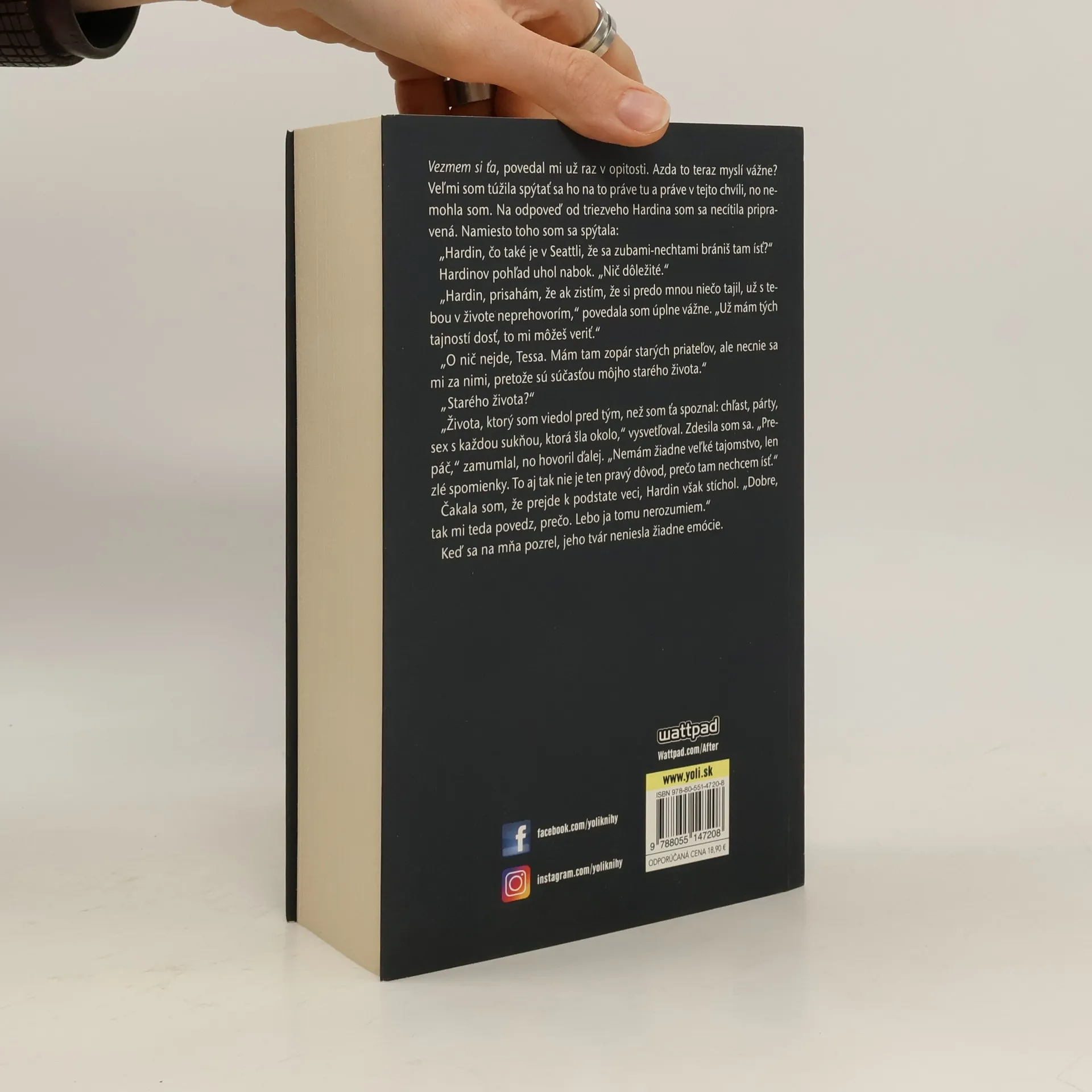 Tessa práve urobila najdôležitejšie rozhodnutie svojho života, no vzápätí sa všetko mení. Nečakané odhalenia o rodinách Tessy i Hardina naznačujú, že skutočnosť je iná, než si obaja mysleli. Čo bude s ich budúcnosťou, o ktorú doposiaľ tak tvrdo bojovali? Tessin život sa rozpadáva. Nič nie je také, ako si myslela. Ani priatelia, ani rodina. Hardin – jediný človek, ktorý by mal za každých okolností byť jej spoľahlivou oporou –, zúri, keď zistí, čo dôležité pred ním Tessa zatajovala. Namiesto toho, aby ju v jej plánoch podporil, rozhodne sa jej ich prekaziť. Tessa vie, že Hardin ju miluje a urobí všetko, aby ju chránil, avšak niekoho ľúbiť a dokázať s ním žiť nie je to isté. Tessu vyčerpáva nekonečný kruh záchvatov žiarlivosti, nepredvídateľného hnevu a odpúšťania. Silu jej citu k Hardinovi už nikdy neprekoná iný muž, žiaden iný bozk jej neposkytne toľko radosti ako Hardinov – stojí však neskrotná vášeň medzi nimi za ten nekonečný boj? Kedysi im na prekonanie problémov stačilo, že jeden druhého ľúbia. Ak sa však Tessa rozhodne poslúchnuť hlas svojho srdca, bude to znamenať... koniec?