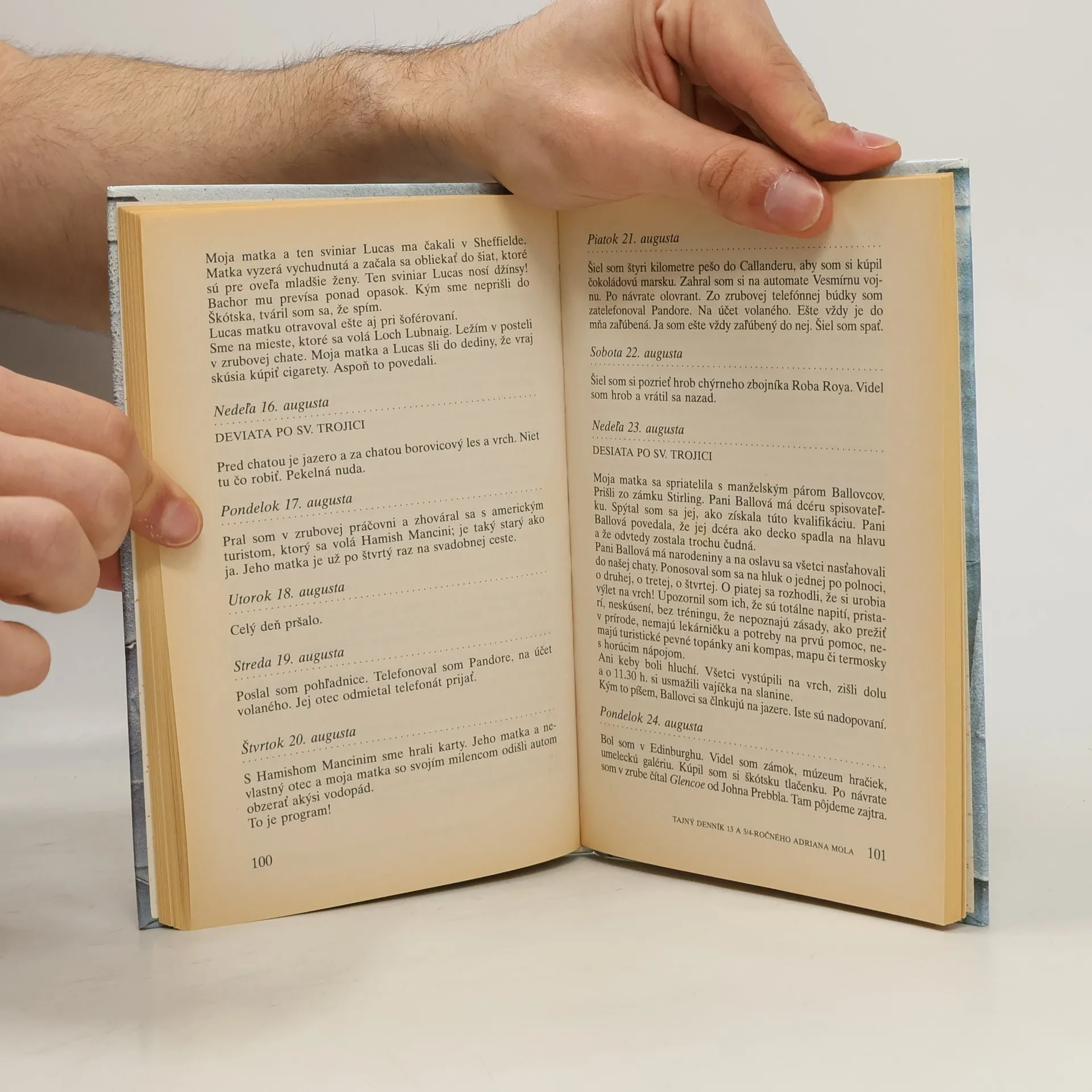 Prvá časť denníkových záznamov hlavného hrdinu. Adrian čelí problémom každodenného života, prežíva svoju prvú lásku, bojuje o naplnenie svojich literárnych ambícií, vyrovnáva sa s neusporiadaným rodinným životom svojich rodičov.