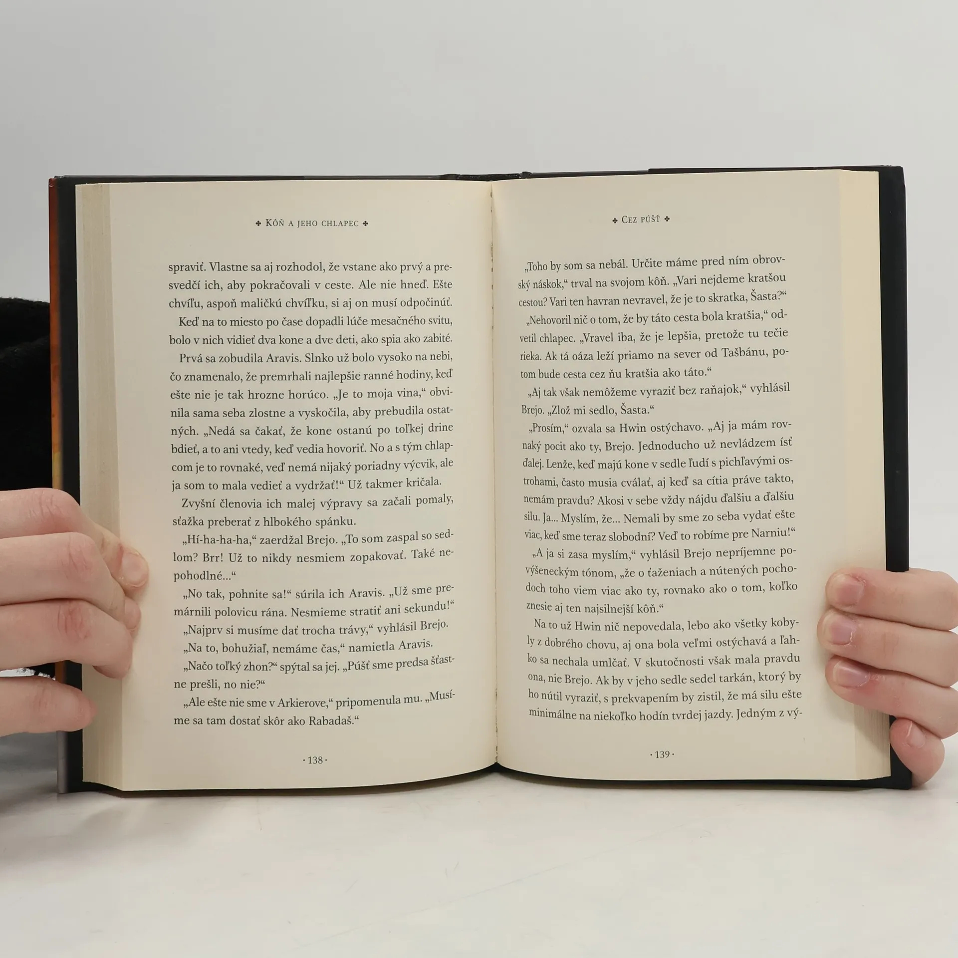 V Kalormene, veľkej orientálnej ríši susediacej aj s Narniou, žije mladý najdúch Šasta. Vychováva ho nevlastný otec, rybár Aršíš, a keď sa ho rozhodne predať za otroka jednému z vládnucej vrstvy tarkánov, Šasta sa újde. Šťastnou náhodou má rovnaké úmysly aj tarkánov kôň s nevysloviteľným erdžaním namiesto mena, ktorého chlapec nazve Brejo. Spolu vyrazia na sever do Narnie a Arkierova. Cestou sa vďaka úteku pred skupinou rozzúrených levov stretnú s tarkánskou dievčinou Aravis, ktorá uteká do Narnie preto, lebo ju chce otec nasilu vydať za starého a mimoriadne nechutného vezíra. Oba kone, na ktorých sa deti vezú, sú hovoriace kone z Narnie, ktoré v mladosti uniesli Kalormenčania do otroctva. Podarí sa im dostať do vytúženej krajiny?