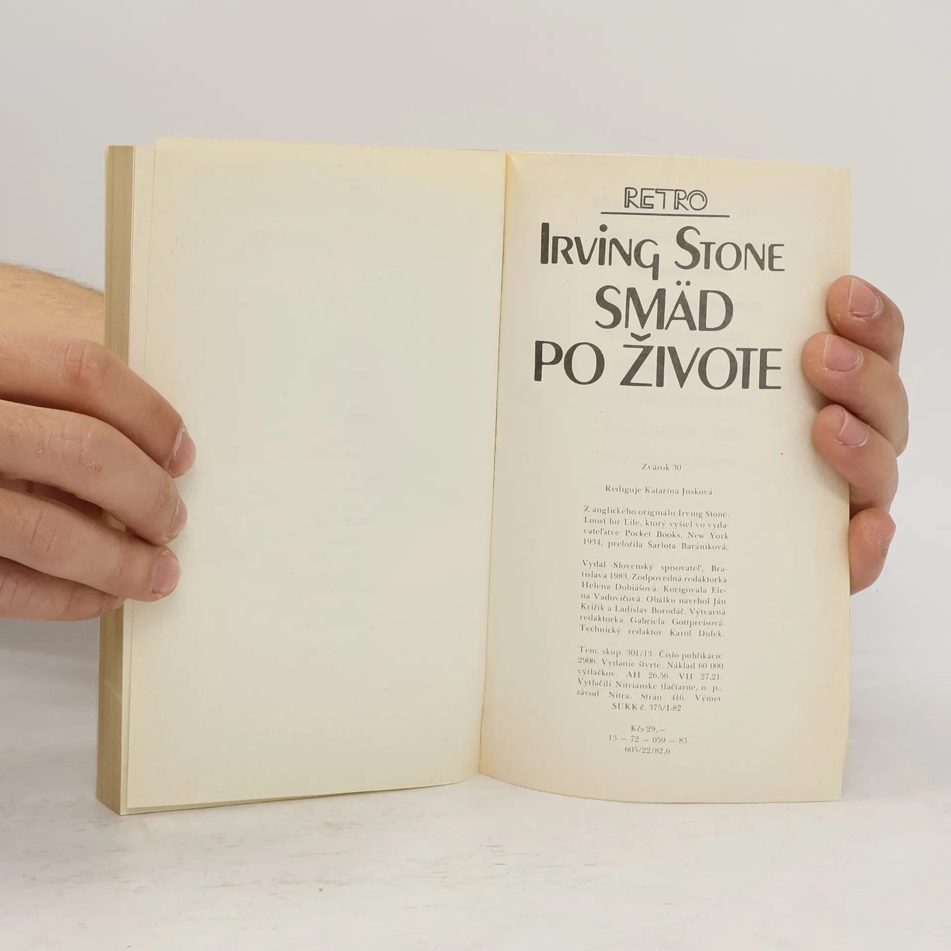 Životopisný román Smäd po živote rozpráva o slávnom holandskom maliarovi V. van Goghovi. Druhé vydanie. Edícia Tvorba národov.
