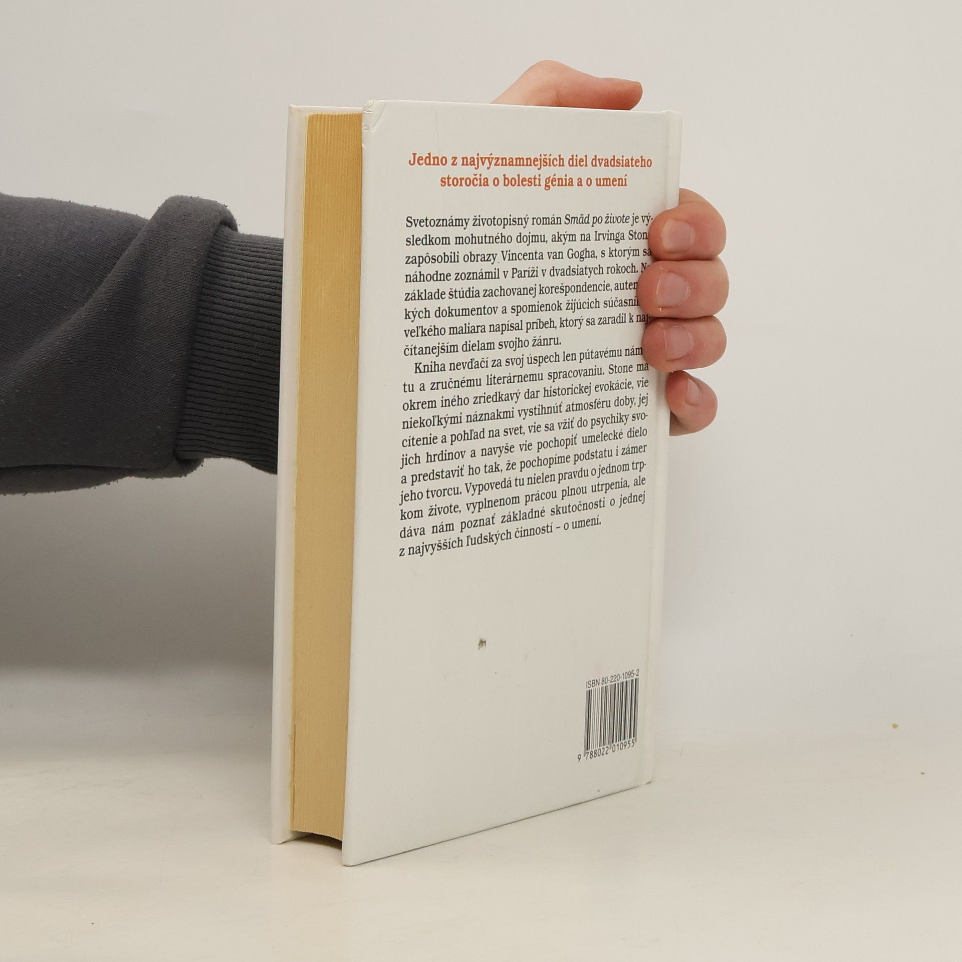 Svetoznámy životopisný román Smäd po živote je výsledkom mohutného dojmu, akým na Irvinga Stona zapôsobili obrazy Vincenta van Gogha, s ktorým sa náhodne zoznámil v Paríži v dvadsiatych rokoch. Na základe štúdia zachovanej korešpondencie, autentických dokumentov a spomienok žijúcich súčasníkov veľkého maliara napísal príbeh, ktorý sa zaradil k najčítanejším dielam svojho žánru. Kniha nevďačí za svoj úspech len pútavému námetu a zručnému literárnemu spracovaniu. Stone má okrem iného zriedkavý dar historickej evokácie, vie niekoľkými náznakmi vystihnúť atmosféru doby, jej cítenie a pohľad na svet, vie pochopiť umelecké dielo a predstaviť ho tak, že pochopíme podstatu a zámer jeho tvorcu. Vypovedá tu nielen pravdu o jednom trpkom živote, vyplnenom prácou plnou utrpenia, ale dáva nám poznať základné skutočnosti o jednej z najvyšších ľudských činností - o umení.