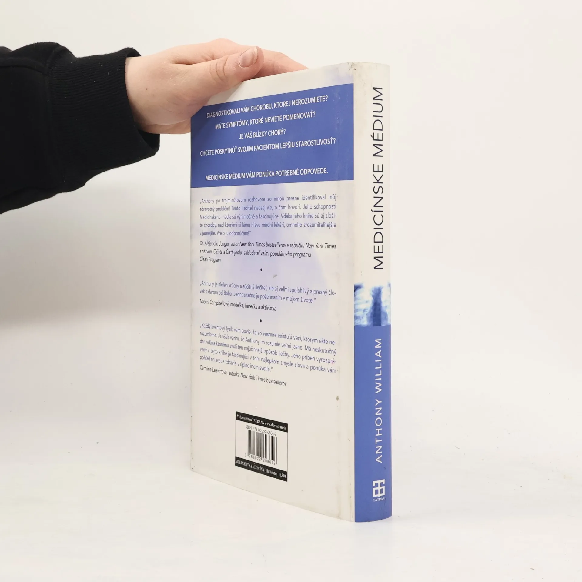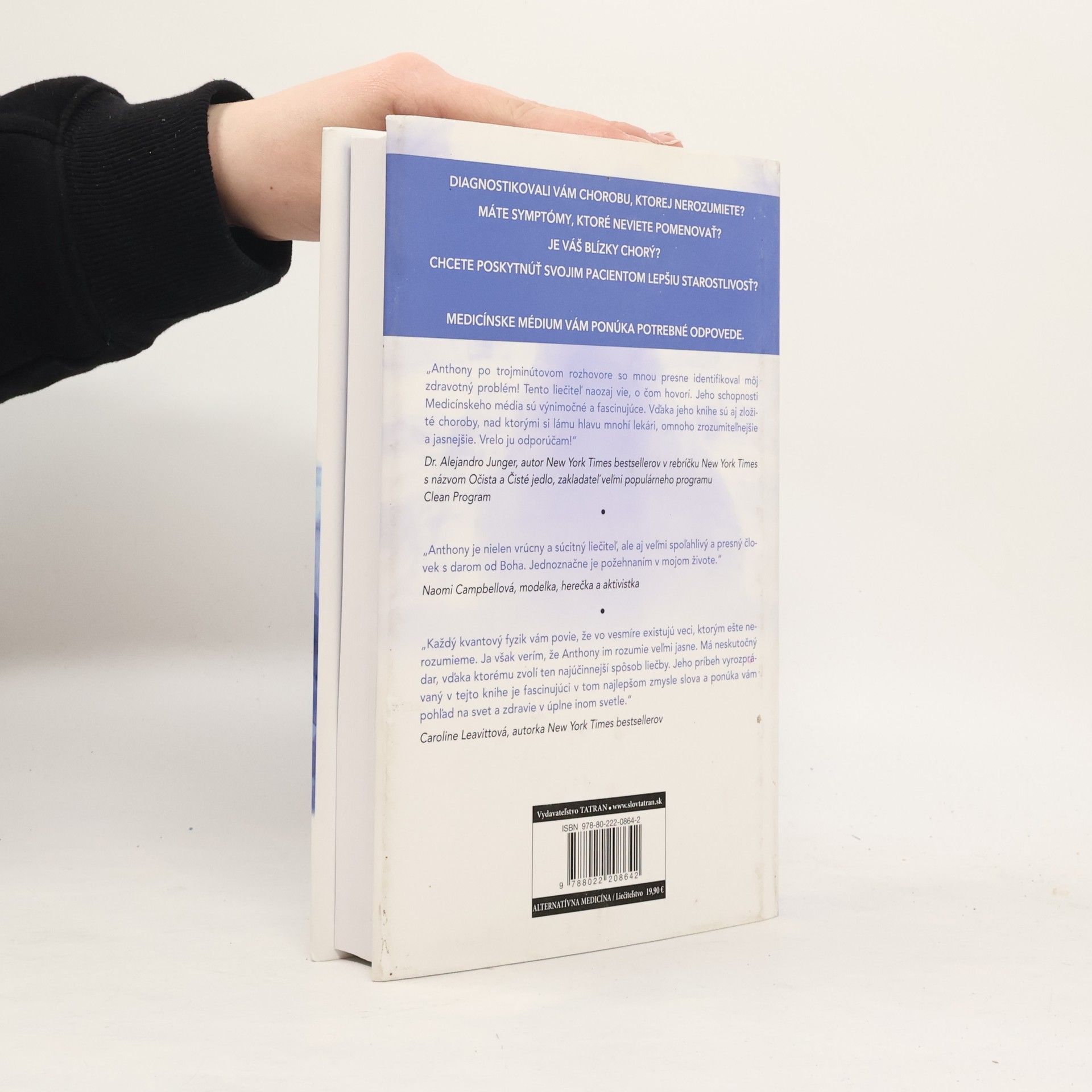 Príručka pre každého, kto chce poznať tajomstvo dlhovekosti a zdravia. Anthony William ako jedinečné Medicínske médium pomohol vyliečiť desaťtisíce ľudí, ktorým lekári stanovili nesprávnu diagnózu, nastavili neúčinnú liečbu alebo im nevedeli určiť chorobu. Podarilo sa mu to vďaka Božiemu hlasu, ktorý mu hovorí priamo do ucha, v čom spočíva príčina bolesti alebo choroby ľudí a čo musia urobiť, aby sa uzdravili. Jeho metódy dosahujú nevídané výsledky, a to aj v prípade ľudí, ktorí sa liečili už celé roky a minuli množstvo peňazí na rôzne formy liečby, kým ho požiadali o pomoc. V tejto prevratnej knihe otvorene ponúka všetky vedomosti, ktoré nadobudol za dvadsaťpäť rokov, počas ktorých vracia ľuďom späť ich život. Kniha obsahuje obrovské množstvo informácií o liečení chorôb, ktoré veda nebude poznať ešte celé desaťročia, a väčšina z týchto poznatkov sa ešte nikde neobjavila.