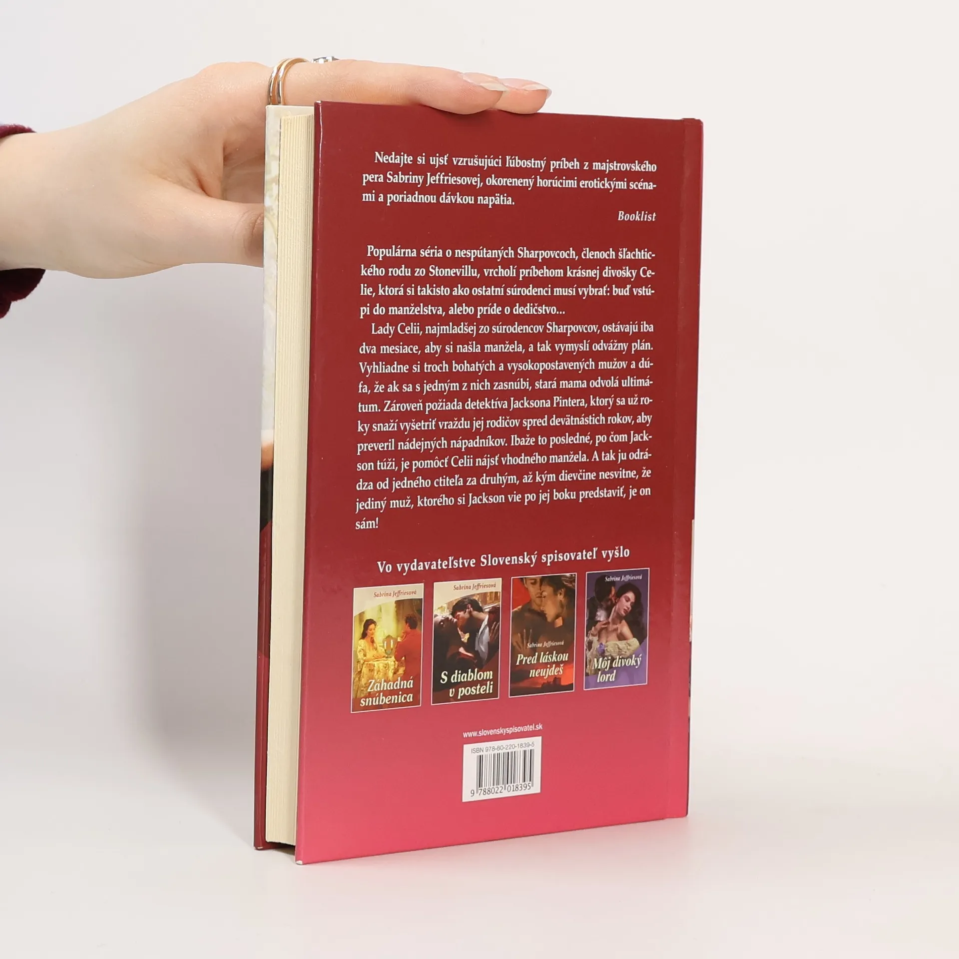 Populárna séria o súrodencoch Sharpovcoch vrcholí vzrušujúcim ľúbostným príbehom. Lady Celii ostávajú iba dva mesiace, aby si našla manžela, a tak si vyhliadne troch bohatých mužov v nádeji, že ak sa s jedným z nich zasnúbi, stará mama odvolá ultimátum. Zároveň požiada detektíva Jacksona Pintera, aby preveril nádejných nápadníkov. Ibaže to posledné, po čom Jackson túži, je pomôcť Celii nájsť manžela. Odrádza ju od jedného ctiteľa za druhým, až kým dievčine nesvitne, že jediný muž, ktorého si Jackson vie po jej boku predstaviť, je on sám!
